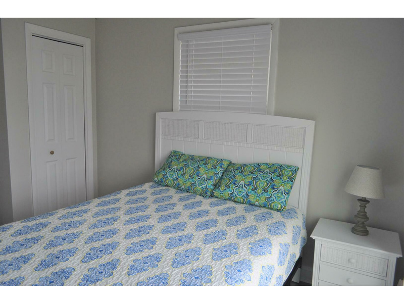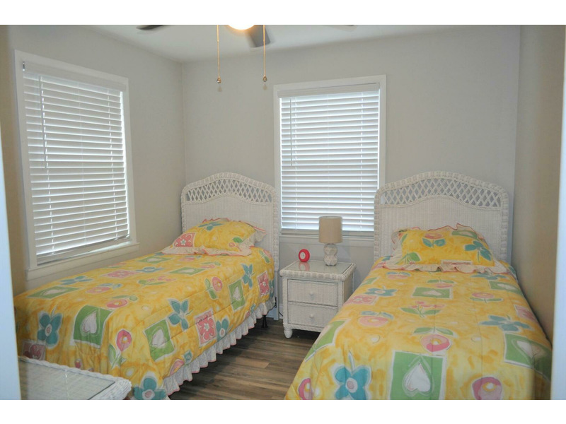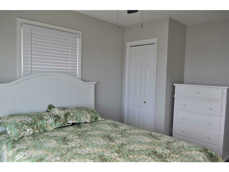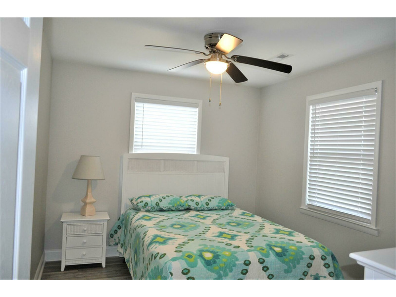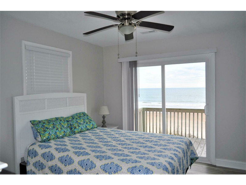 Inside, the open-concept living, dining, and kitchen area sits at the center of the home, flanked by two bedrooms and a shared full bath on each side - 2014ideal for families or groups. Two ocean-facing Queen bedrooms open directly onto the deck, while the remaining rooms include another Queen and a Twin bedroom with two beds on the street side.