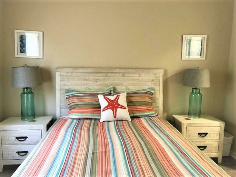 Master Bedroom: Queen bed, tranquil location at the end of the hall, and private half bath.