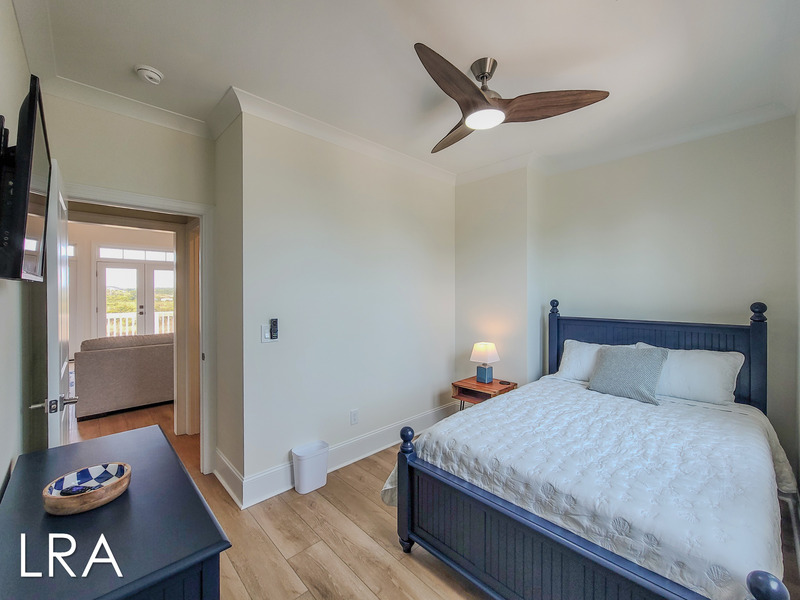 The top-floor Bright and Breezy Living and dining area flows as smoothly as a sea breeze, featuring soaring windows with sweeping views of the Topsail Sound and peeks of the Atlantic Ocean. The open design means everyone can stay connectedwhether cooking, chatting, or simply soaking in the view. An elevator makes every level of this home easy to access, so vacation truly feels effortless.
