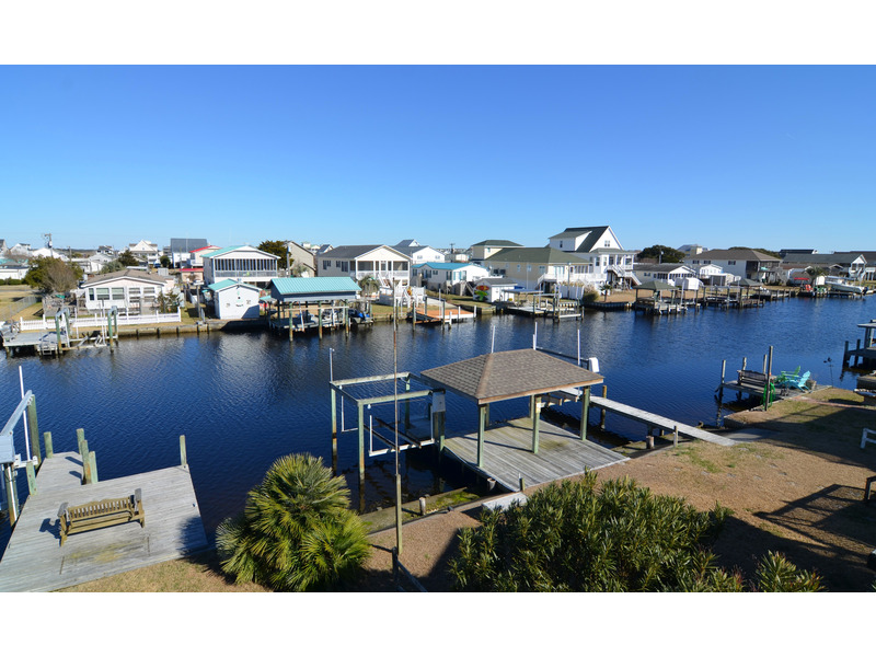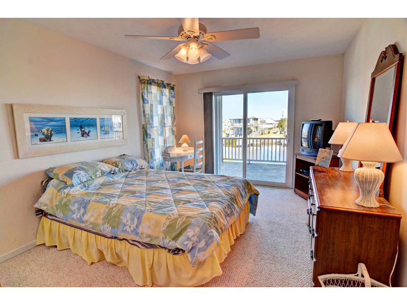 Up the stairs, you will find the first-floor bedrooms of this reverse-floor-plan home. To the right on this level is a large laundry room with a full-size washer and dryer that's sure to be very accommodating! At the left end of this level, the very nice sized master suite with a king bed, television, direct access to the waterfront deck, and nicely appointed master bath with a jacuzzi tub and shower is sure to provide some relaxing nights for just mom and dad. Coming back towards the stairway, you will find a shared bath for the two remaining bedrooms on this floor complete with double sinks and shower/tub. The 2nd bedroom on this floor is perfect for the little ones with two twin beds and access to the waterfront deck. The third bedroom features a queen-sized bed along with access to the waterfront deck. Up the stairs to the living level, immediately to your left, you will find a shared full bath with shower/tub. The living room and kitchen areas overlook the beautiful canal to offer you amazing views. You can even enjoy those great Topsail nights from the screened-in porch located off the living room. Ample seating is provided so the whole family can peacefully watch the boats go by together. Beach Ball offers Cable and Internet services to its guests. The 4th bedroom is located on this floor and offers a queen-sized bed and access to the upper-level full bathroom. Beach Ball is truly a special treat for the boater or sound side lover.