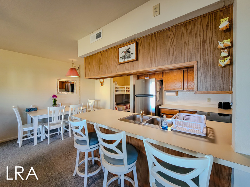 When you have had enough fun in the sun, come inside and whip up a fantastic meal in the full kitchen, which is equipped with major appliances and all of your basic cooking needs. Gather around the dining room table, which offers seating for 4, or enjoy your meal at the kitchen bar, which offers an additional 3 bar stools.