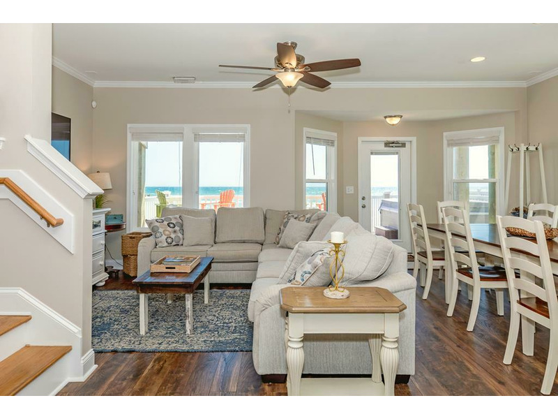 The first floor of the home is the main living area. Step inside to the open floor plan where a beautiful living room awaits with stellar views and access to an oceanfront deck. The kitchen features granite countertops, stainless steel appliances and everything you need to prepare delicious meals together. With the community pool, grilling area, private hot tub and more, you are ready enjoy all the Crab House offers.