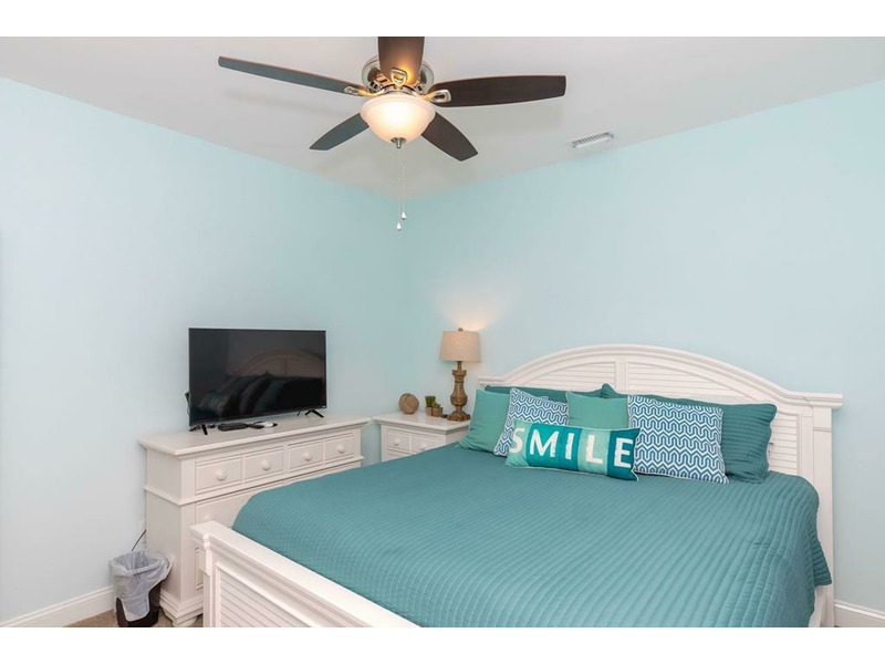 - Street-Side Bedroom: Twin over Double Bunk Bed with Trundle; TV; shares hall bathroom with tub/shower