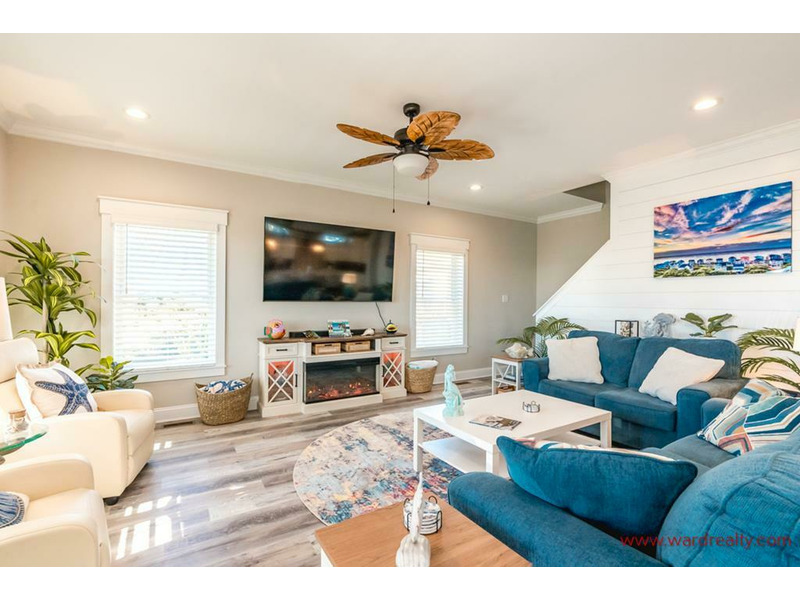 This beautifully appointed four-bedroom, four-bath beach home is perfectly situated in N. Topsail Beach, offering sweeping coastal views and easy access to the sandy shoreline just steps away. Designed for comfort and relaxation, the home features spacious living areas, well-equipped bedrooms, and expansive decks ideal for soaking in ocean breezes and sunrise views. Outside, a large yard provides rare open space for beachside living, highlighted by a year-round fire pitâ"perfect for evening gatherings after a day on the beach. Ideal for families or groups with or without your furry family members, this home combines convenience, scenery, and coastal charm in one exceptional retreat.