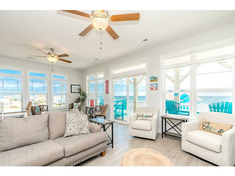 A Topsail Fairytale welcomes you to a beautiful coastal retreat designed for unforgettable family vacations. With sweeping ocean views from three front decks, and sound views from the top back deck, this spacious home offers the best of both worlds.