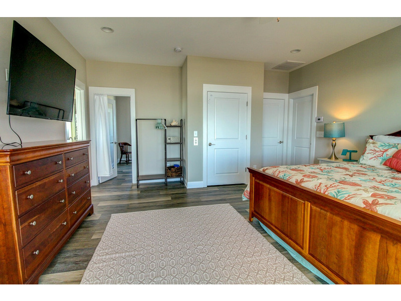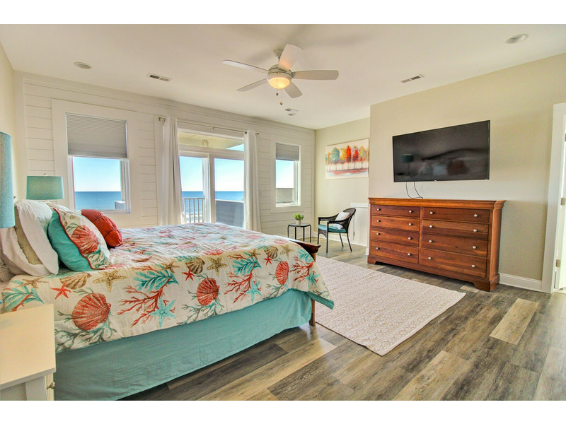 Oceanview King Bedroom with en suite bath and television and private decks on both the ocean and sound sides