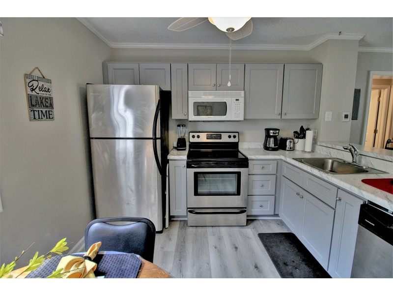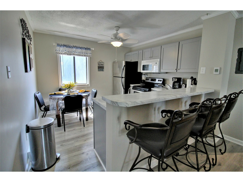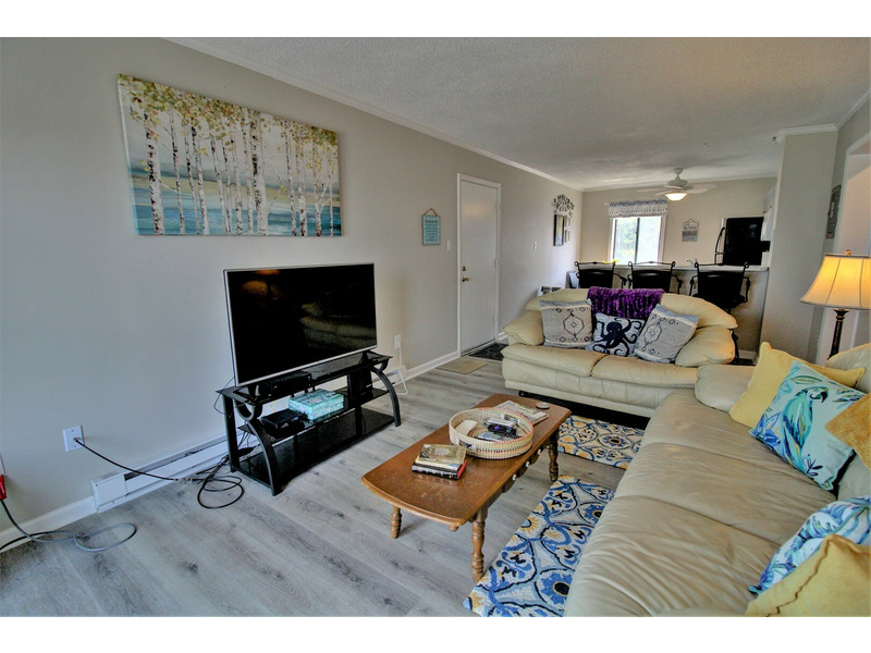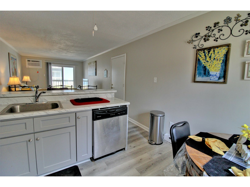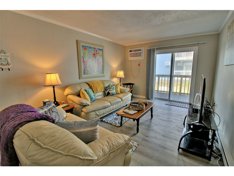 Upon entry into the condo, you will find the fully equipped kitchen to the left and the living room to the right. The living room offers comfortable seating, television, and access to an oceanview balcony.