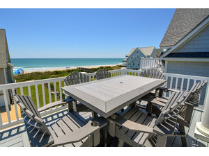 “Footprints” is located in the “Ocean Ridge” community in North Topsail Beach, NC. The home is just a few steps to the private shared direct beach access and 0.22 miles to the community pool. This oceanside home is equipped with an elevator and hot tub. Incredible views of both the ocean and the Intercoastal Waterway can be seen from the home.