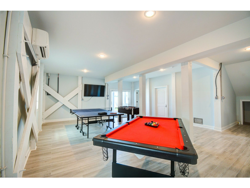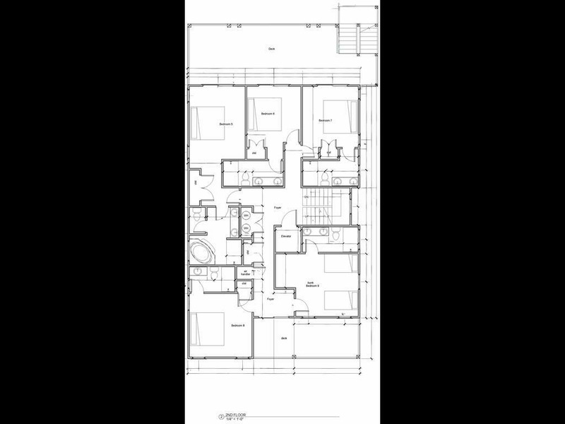 First Floor: The entry level features a welcoming foyer and multiple bedrooms designed to provide comfortable accommodations for large groups. This level also includes a bunk room, ideal for younger guests, and direct access to the deck with a hot tub, allowing for seamless indoor-outdoor enjoyment. An elevator and interior stairway make it easy to access each floor with ease.