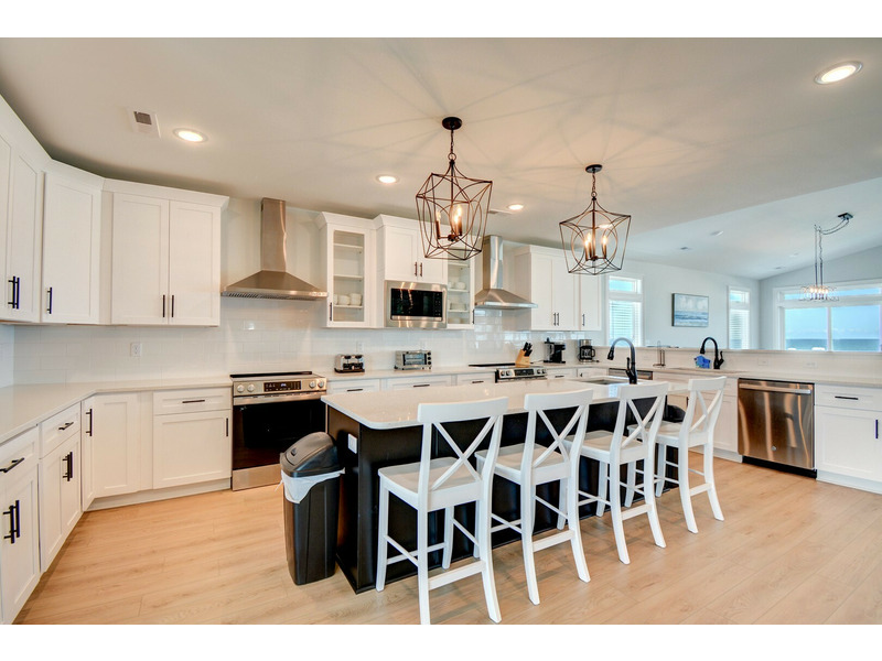Third Floor: The heart of the home is found on the third level, where the main living area and fully equipped kitchen await. This open-concept space includes comfortable seating, a large dining area, and access to a covered deck with both shaded and open areas to relax. The gourmet kitchen features high-end appliances and plenty of room for group meal preparation, while a wet bar adds an extra touch of convenience for entertaining. The third floor also includes a private bedroom suite, perfect for those who prefer added privacy and ease of access to the main gathering area.