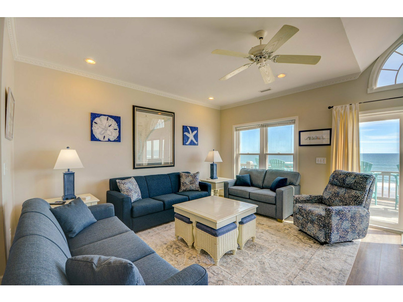 Perched right on the oceanfront, C-Scape is the perfect retreat for a relaxing beach getaway in Surf City. Just four blocks from the Surf City Pier, this spacious six-bedroom, five-bathroom home comfortably accommodates up to 14 guests, making it ideal for family gatherings or group vacations.