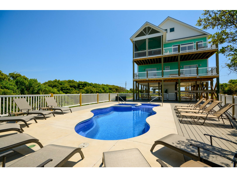 Come enjoy this brand new beautiful 8 bedroom, 8.5 bathroom beach house with a large deck pool, hot tub, dedicated boat slip and community boat ramp on the Intercoastal Waterway at North Topsail Beach.