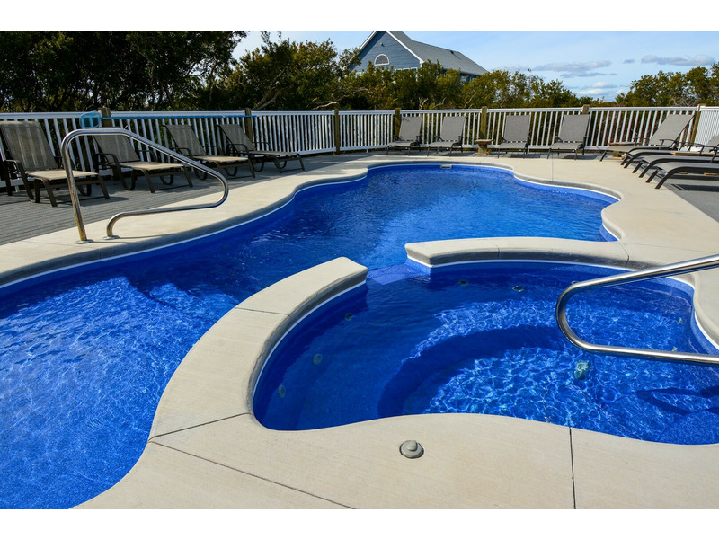 This extravagant home provides guests with a large private swimming pool/hot tub. The swimming pool has a tanning ledge and ranges in depth from 3 to 6 feet. A spacious deck area borders the pool and is perfect for gatherings. There are plenty of lounge chairs and an abundance of room for sunbathing. Two large picnic tables and a large gas grill provide for outdoor dining. The backyard pool area is surrounded by vegetation that provides seclusion and natural privacy. An outdoor shower allows you to rinse off after a day at the beach or pool. Beach access is a short 50-meter walk to the dedicated Barton Bay crossover. The beaches are wide and never crowded on this part of the island. The shoreline location and currents provide an abundance of seashells on our beach.