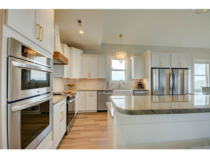 The second level features five large bedrooms, each with their own bathroom. On the left, you enter the first bedroom with a King bed, private bath and stunning ocean view. Across the hall, the Second bedroom has a Queen sized bed, private bath with a pullout couch. The Third bedroom sits mid hallway and features a King sized bed, private bath and nice view of the canal waterway. The Fourth and Fifth bedrooms are at the end of the hall and sit adjacent on the back side. Both feature King beds, private baths and sliding glass doors that open up to the back deck, overlooking the pool and with a beautiful view of the inter-coastal waterway. The laundry room is situated at the base of the stairs and is spacious with cabinets and a hanging rod.