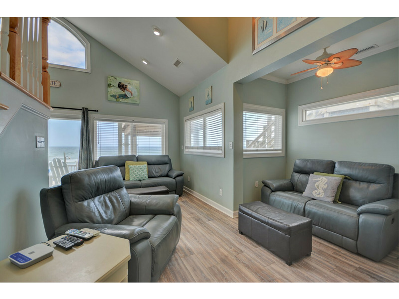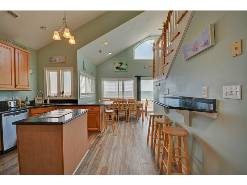 With large glass windows across the oceanfront wall, taking full advantage of the beach atmosphere and ocean views are the rule at "Mo & Anita's." From the granite counter tops and stainless appliances in the kitchen to the master bedroom in the loft area, you'll have all the comforts you need in this large coastal home.