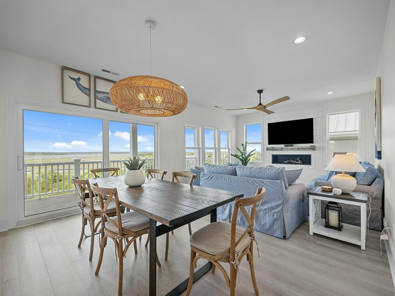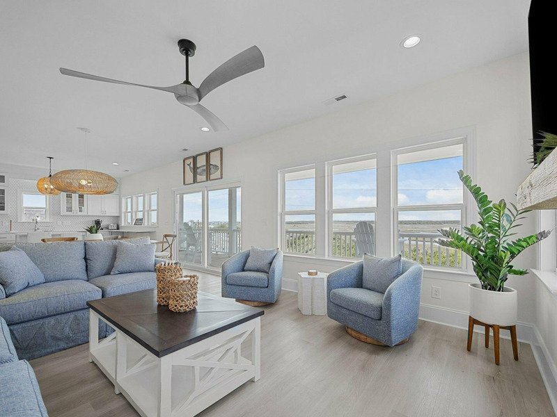 Discover the ultimate coastal getaway at "Ocean Sounds," a beautifully decorated retreat in the Village of Stump Sound. Just steps from the beach, this second-row home offers a luxurious escape. Enjoy stunning ocean and sound views, a private elevator, a community pool, tennis/pickleball courts, multiple community beach walkovers, and a dock with a kayak launch.