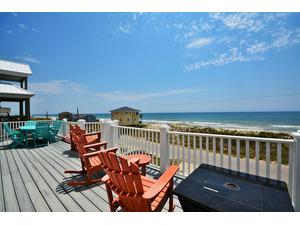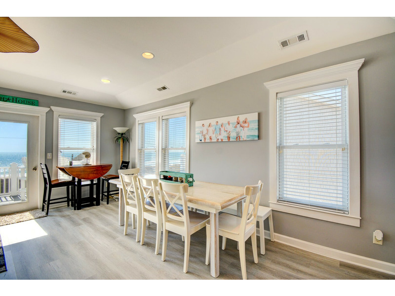 The outdoor space of this property has everything you could ask for. The two generously sized ocean view decks allow for stunning areas of relaxation. The lower deck has two pub-height tables and chairs; the upper deck offering two sets of arm chairs, cocktail tables and a large dining table perfect for dining al-fresco. Under the front stairs is an enclosed hot/cold outdoor shower to wash off the sand after a day at the beach.