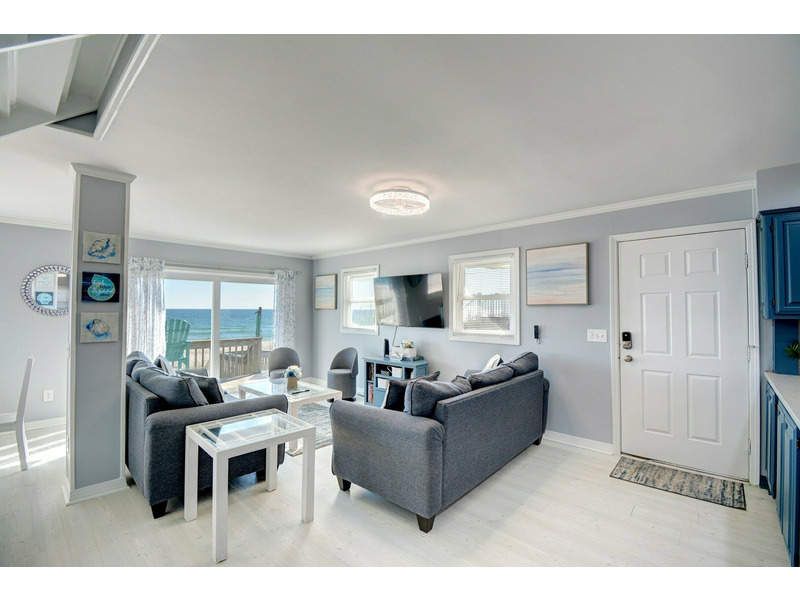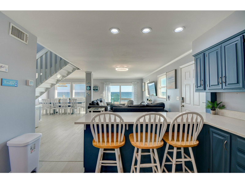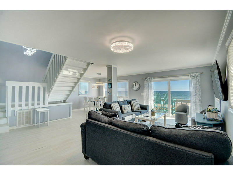 Escape to Surf & Sail, a remodeled oceanfront beach house in North Topsail Beach. This 4-bedroom, 2.5-bathroom retreat offers beautiful ocean views from every room, modern updates, and direct beach access. Bring your family, friends, and furry companions (pet fee applies) to enjoy a relaxing coastal getaway. Unwind on the ocean-view deck, soak in the scenery, and create lasting memories at this comfortable beachside home.