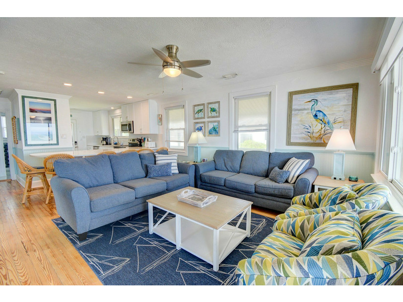 Escape to Trivial Pursuit, an inviting oceanfront retreat with stunning views, a private lower-level apartment, and all the comforts of home. Located just steps from the sand, this family-friendly beach house is perfect for large gatherings, sleeping up to 12 guests. Relax on the wrap-around deck with your morning coffee, spot dolphins from the living room, and enjoy direct beach access for endless seaside fun. Book now to experience the best of Topsail Island at Trivial Pursuit!