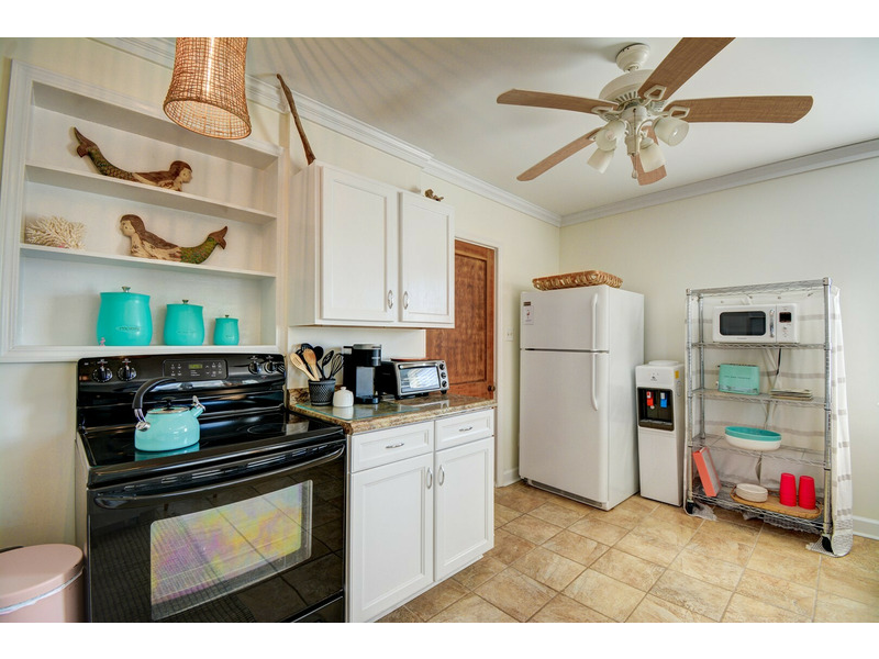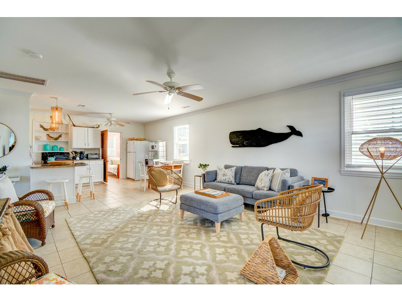 This ground-level retreat offers a bright, modern living space with comfortable furnishings and a Smart TV for movie nights after a day in the sun. The fully equipped kitchen includes all the essentials for vacation meals, including cookware, standard appliances, and a Keurig coffee maker for your morning brew.