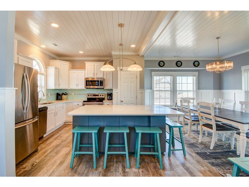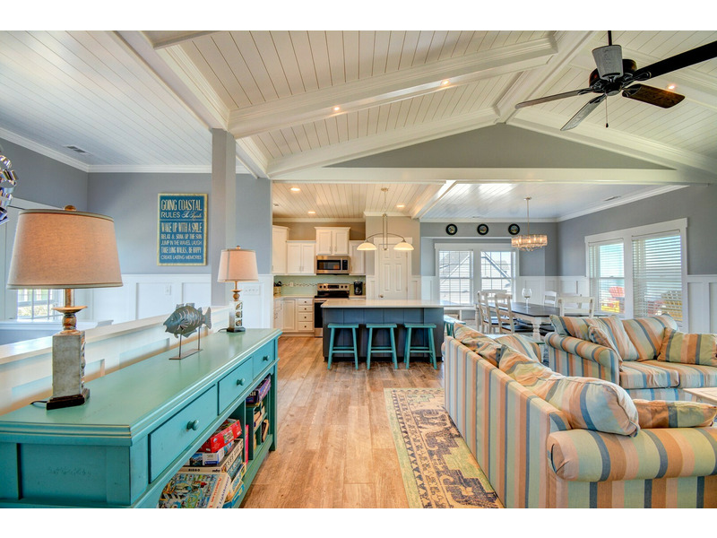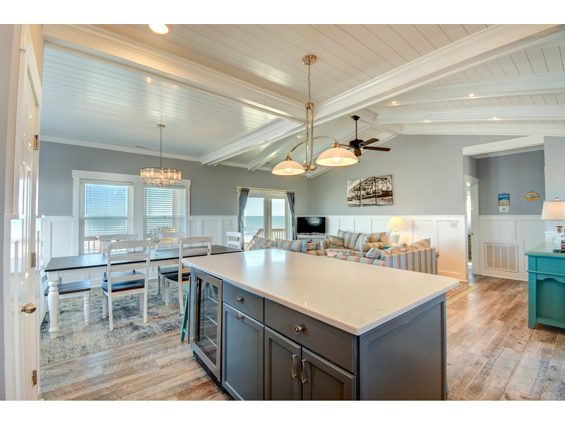 Spread across three floors, Going Coastal offers ample space for up to 10 guests to relax and unwind. With four bedrooms, three bathrooms, and a reversed living floor plan, this home is thoughtfully designed to maximize ocean views. The open-concept design and non-carpeted floors create a bright, airy atmosphere, perfect for spending quality time with family and friends.