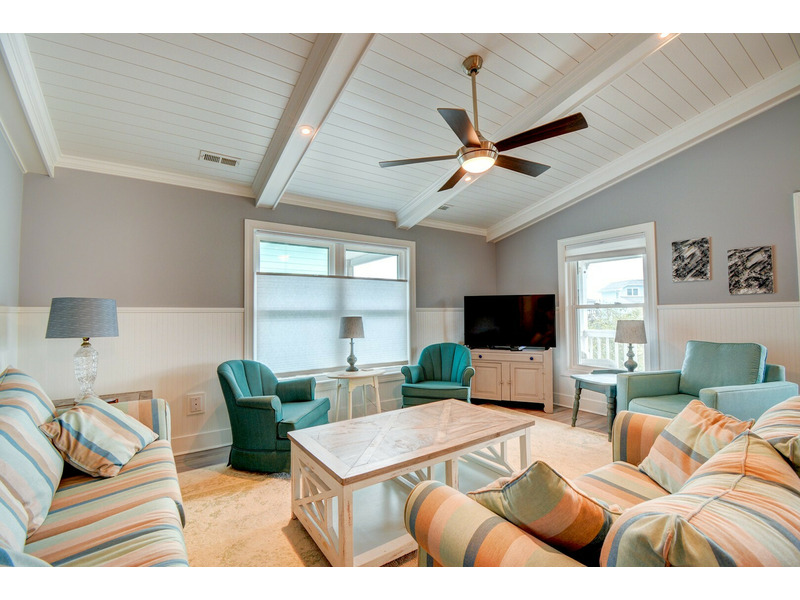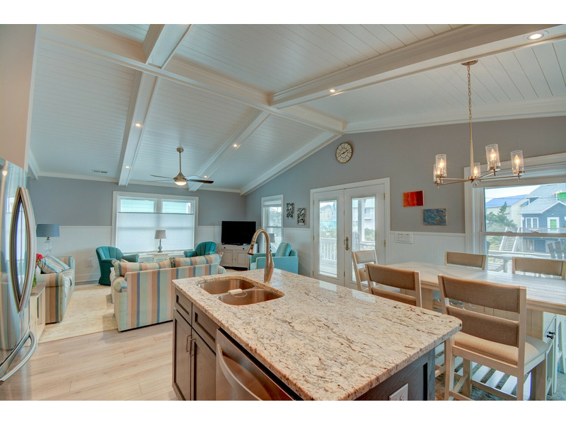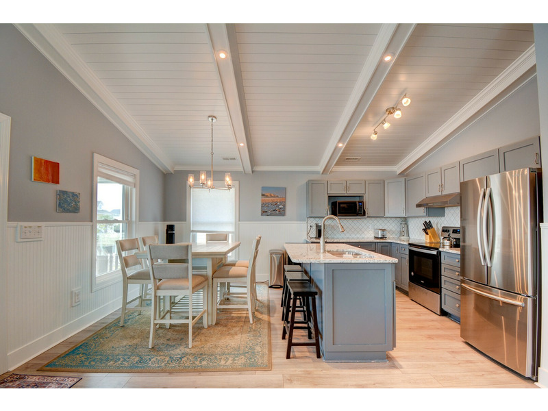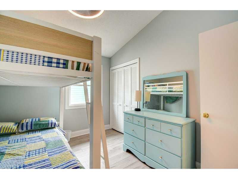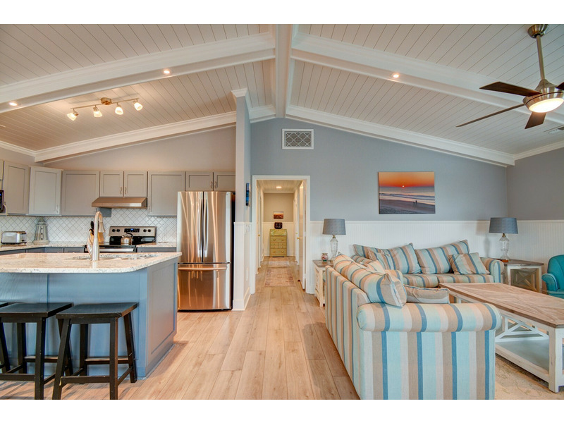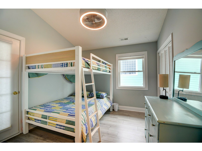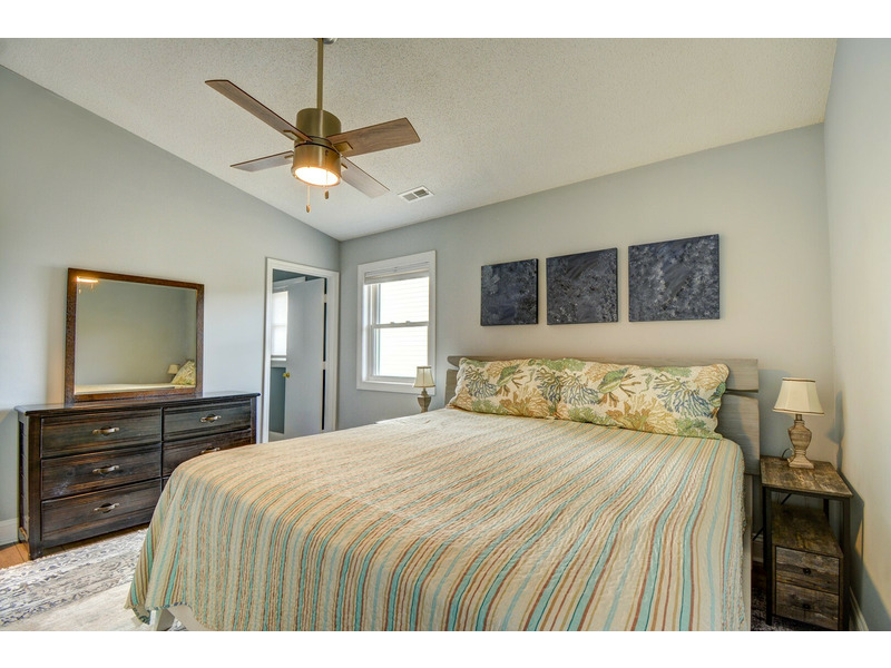 Welcome to Destination, a charming three-bedroom, two-bathroom beach house just 400 feet from a shared private beach access in the heart of Surf City. With a king bedroom, a queen bedroom, and a bunk room featuring a double-over-double bunk bed, this home comfortably accommodates up to eight guests, making it perfect for families or groups of friends.