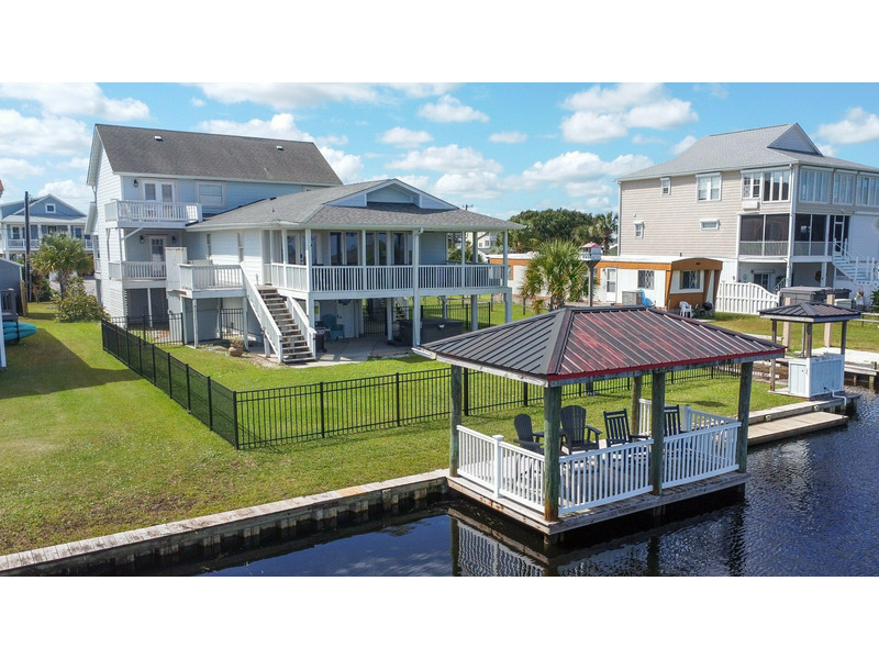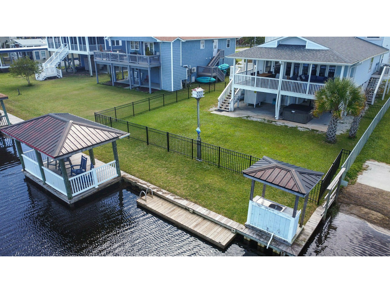 Tucked along the quiet canals of Surf City, Dig’n It is a relaxed waterfront getaway designed for families, friends, and dog lovers alike. This canalfront home offers peaceful marsh views, a fully fenced backyard perfect for pets, and a private gazebo over the water — an ideal spot for morning coffee or sunset evenings. After a day at the beach, unwind in the hot tub sheltered beneath the covered deck.