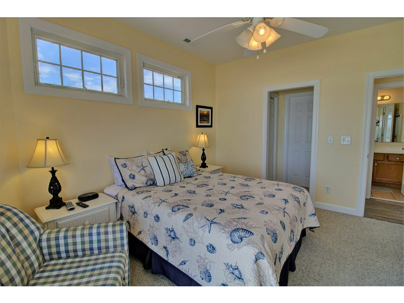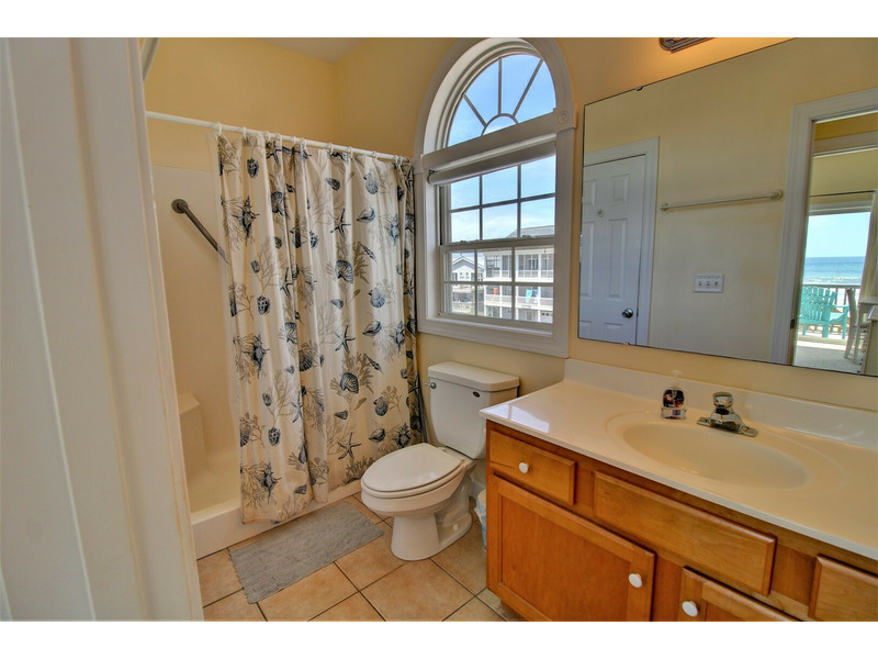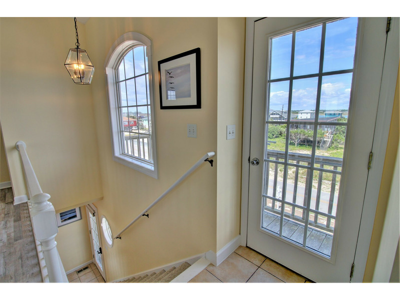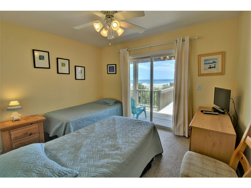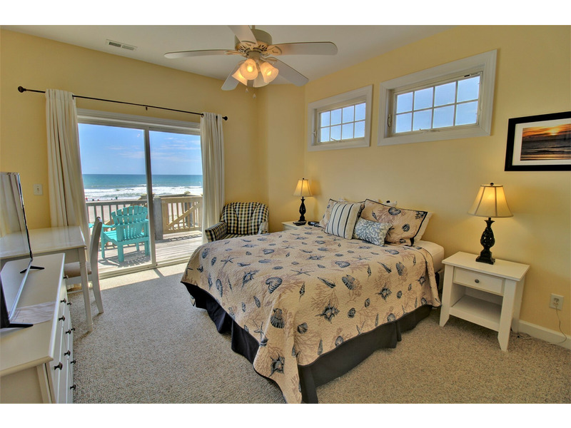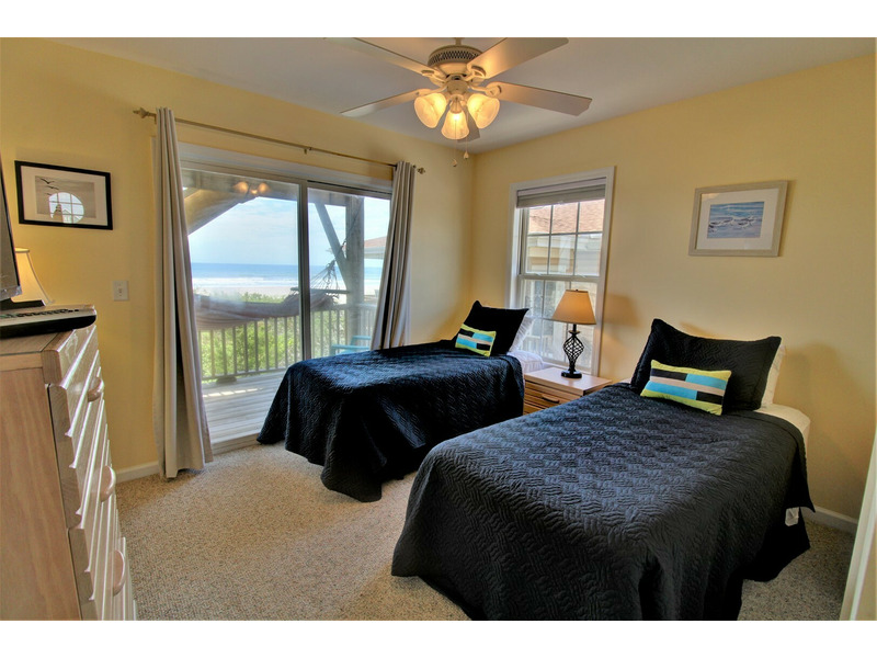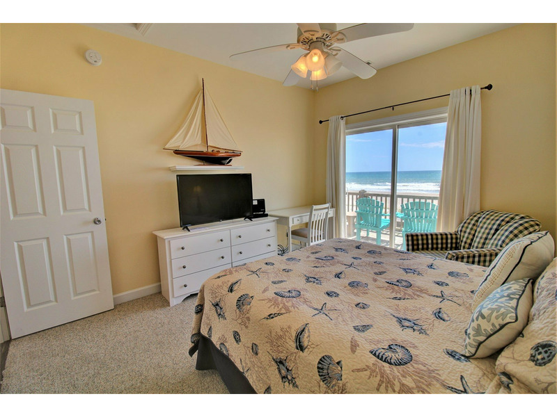 Three bedrooms are located on the first floor connected by a hallway that runs the length of the home. All four bedrooms in this home are on the oceanfront side, providing stunning views from each guest quarter.