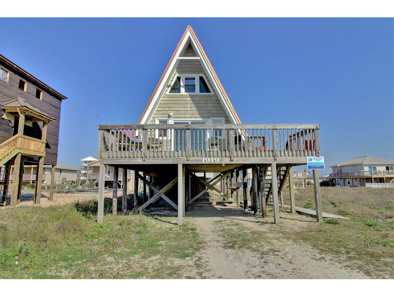 Copper TopLocated close to an oceanfront public beach access, "Copper Top" is a unique 3 bedroom "A-Frame" beach house in Topsail Island. This home watches quietly over the ocean from its large oceanside deck.