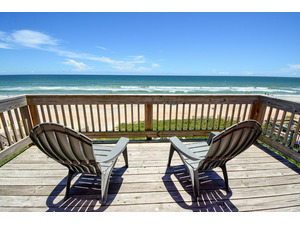 The large outdoor deck has comfortable chairs for lounging in the sun and direct access to the beach. Imagine waking up and going for a morning swim in the ocean...all this and more await you at "Sundance."