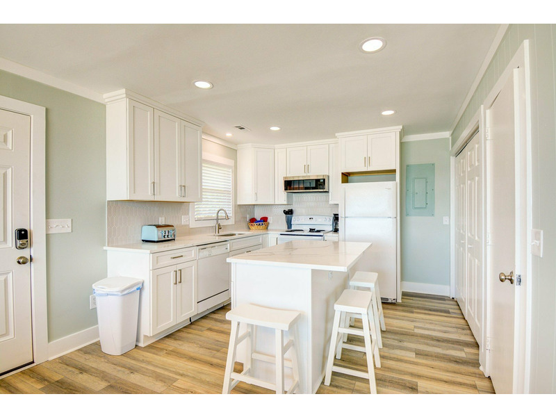 Once you enter Sundance, large windows with breathtaking ocean views provide plenty of natural light and openness. Located to the left, the kitchen provides plenty of kitchen utensils, plates, and accessories to make a comfortable meal during your stay. Whether you pull up to the bar or dine at the table, take in the views while you eat.