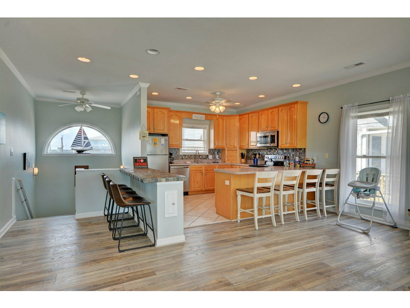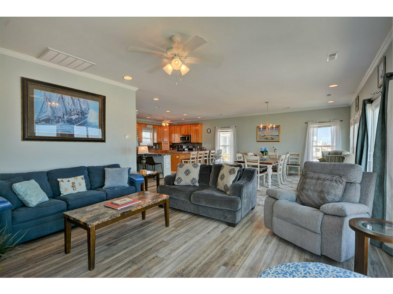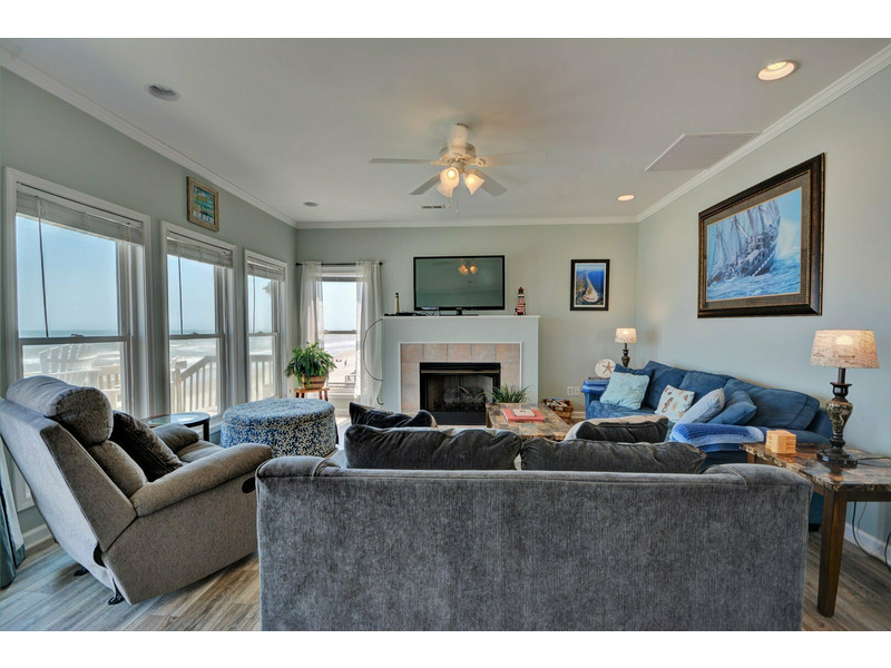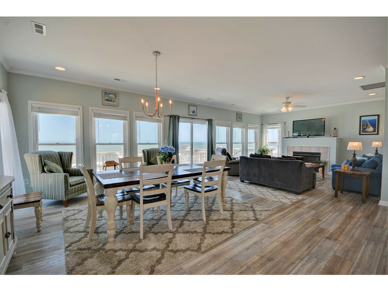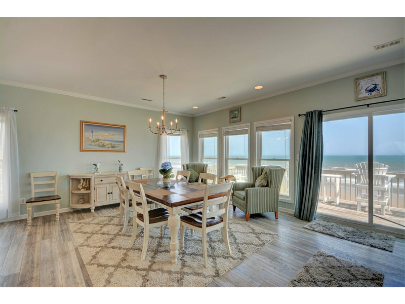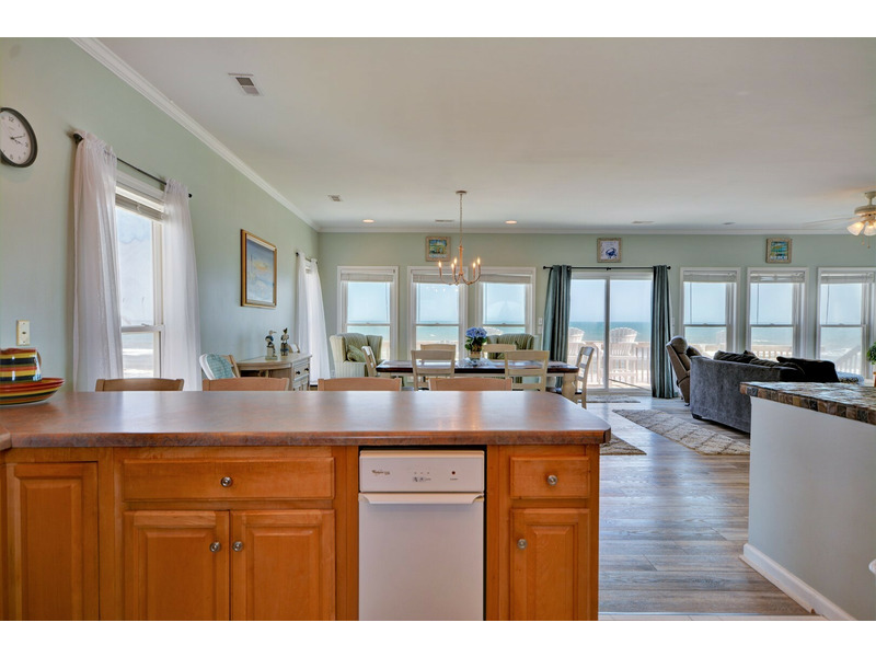 “Spindrift,” a truly immaculate oceanfront home, boasts a total of five bedrooms, three bathrooms and sleeps up to 16 people in amazing comfort. While staying at “Spindrift,” it is very hard to avoid looking at the ocean. Whether you are seated in the dining room, relaxing in the living room, or preparing dinner in the kitchen, the open floor plan allows for dramatic ocean views through the numerous windows.