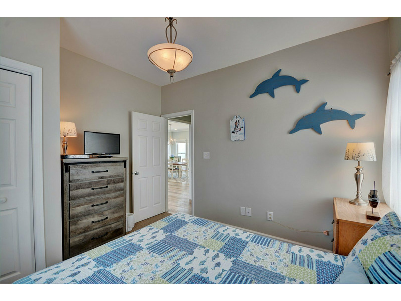 Two of the five bedrooms are oceanfront with seamless deck access. During the day, guests enjoy spending time on the huge decks and taking full advantage of the private beach access. Fortunately, “Spindrift” is located on one of the quietest stretches of beach on Topsail Island. The master bedroom has a king bed with a private bathroom and direct deck access. Bedroom two provides a queen bed with a twin bunk bed and also direct deck access. Bedroom three has a queen bed, bedroom four has two sets of twin bunk beds and bedroom five has an additional queen bed.