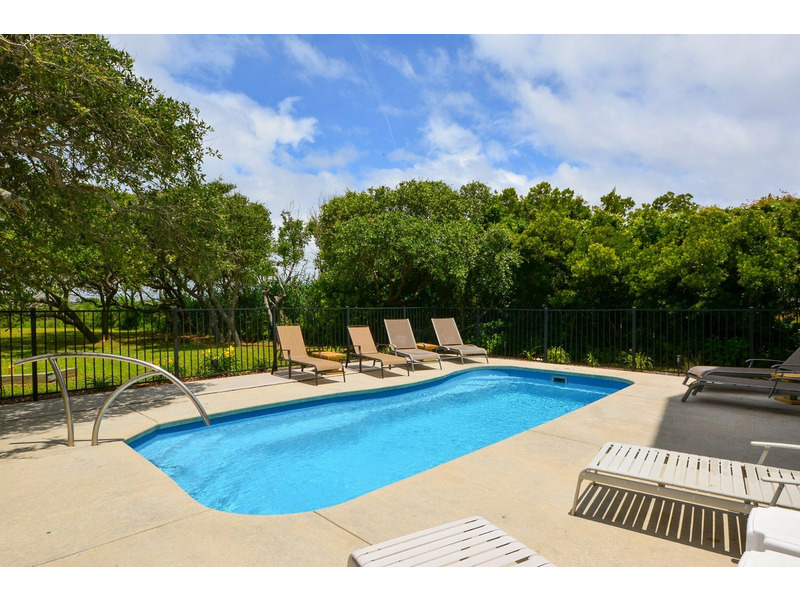 This extravagant home provides guests with a private swimming pool that ranges in depth from 3 to 5 feet, with built-in seating and a surrounding deck area to take in the sun. At the end of the day, rinse off the sun, sand and lotion in a relaxing over-sized outdoor shower.