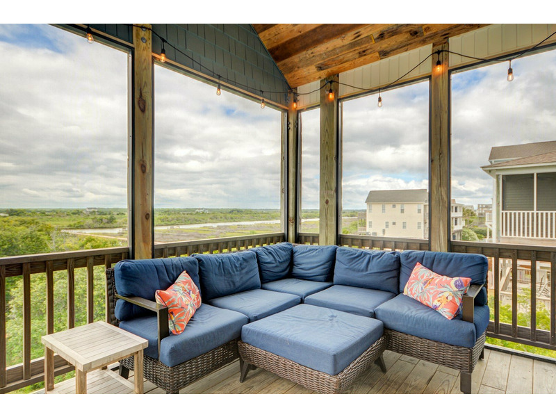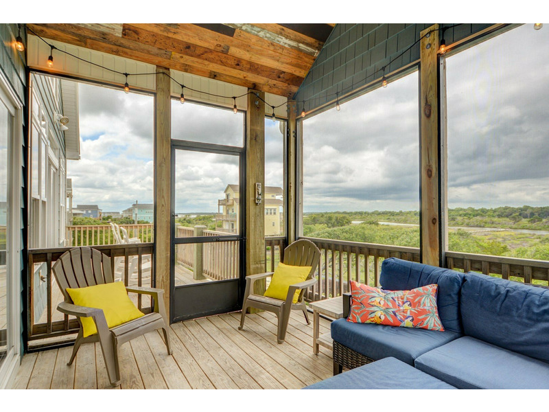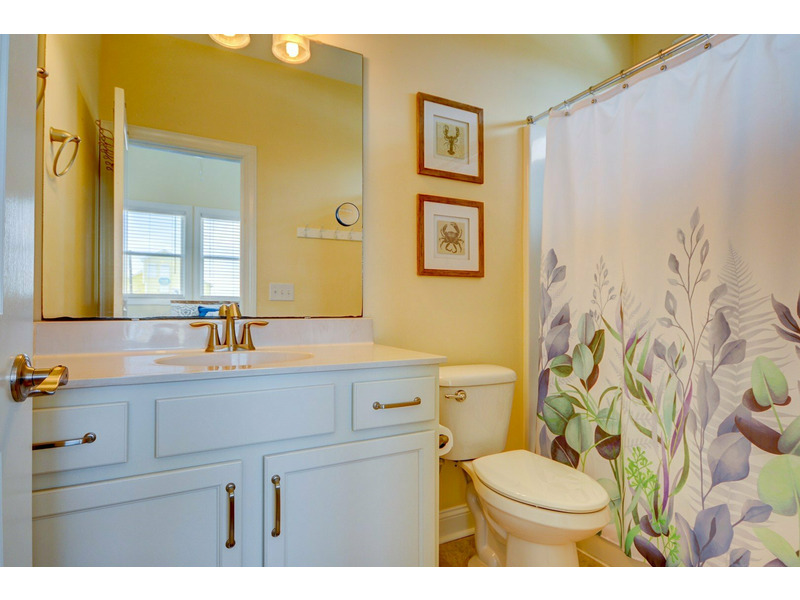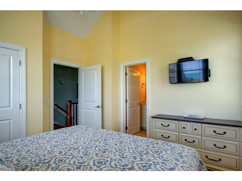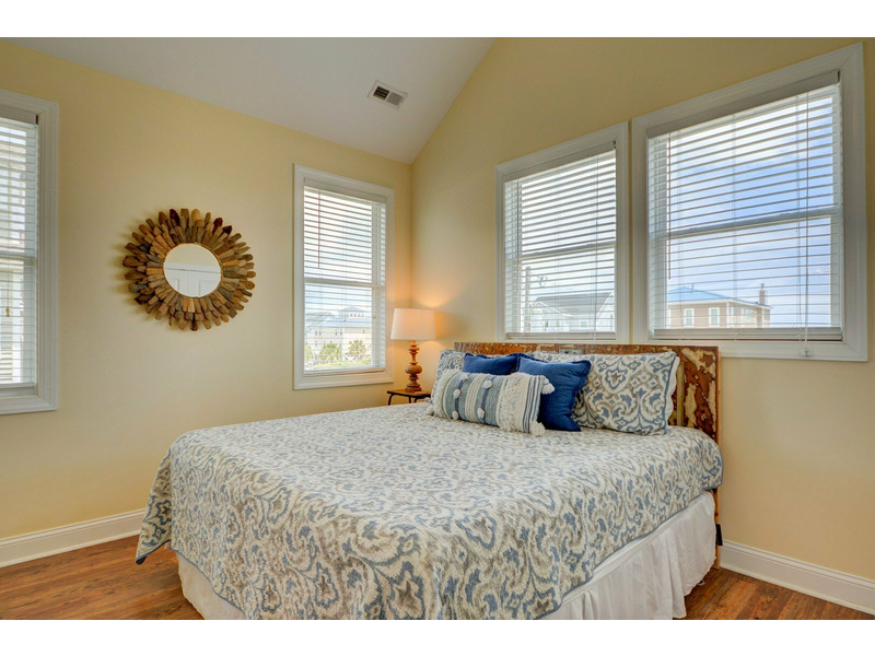 The second level features five bedrooms and three bathrooms. On the left. you enter into the first bedroom with a queen bed and stunning ocean views. The second bedroom is perfect for the younger guests with a twin bunk bed, trundle bed and queen bed. The first and second bedrooms share a full adjoining bathroom. The third bedroom is at the end of the hallway, it features a king size bed and opens up to the lower back deck which overlooks the intercoastal waterway. This bedroom utilizes the full bathroom located at the end of the main hallway. The fourth bedroom offers a queen bed and opens to the lower back deck. This bedroom shares a full bath with the fifth bedroom. The fifth bedroom features a king bed and ocean view.