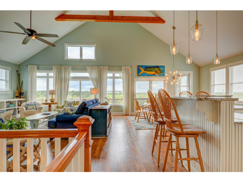 This large, elegant and comfortable home has an eclectic charm with warm beach inspired colors that illuminate the rooms and create an inviting and relaxing atmosphere. Two quaint oceanfront decks provide the perfect spot to relax or watch the stunning sunrise over the ocean. The large decks provide a scenic and tranquil view of the natural intracoastal waterway and beautiful sunsets.
