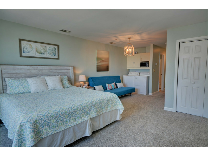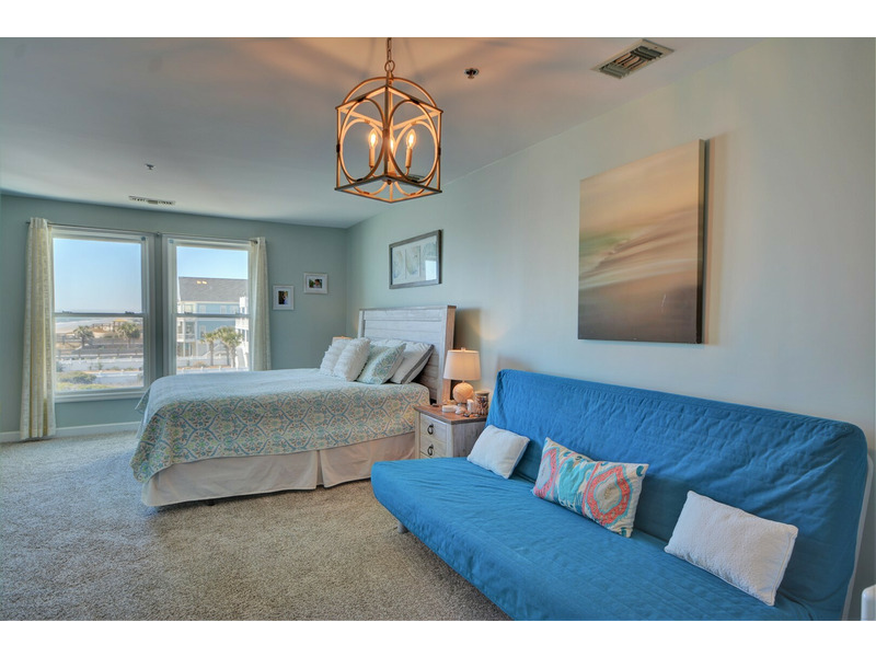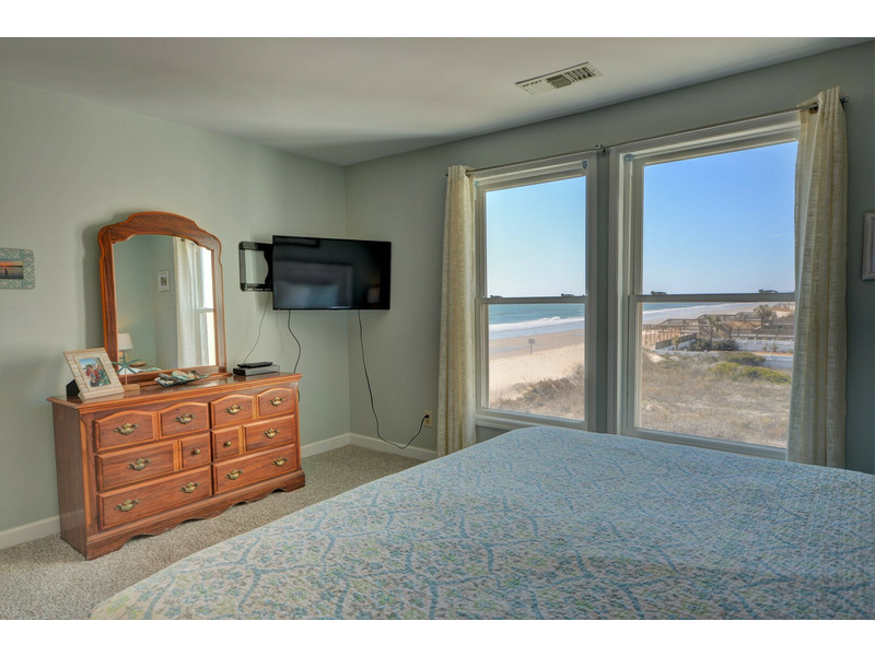 At the end of the hallway, you will find the doors to the other two bedrooms. On your left is the large queen sized bedroom with private full bathroom and access to the balcony and great ocean views. Across the hall is the master suite. Wake up looking at the ocean from this huge master suite which has a King sized bed with pillowtop mattress, private full bathroom and sitting area. Since this is a corner condo, you can see all the way to Surf City on a clear day from thisroom - the views are unparalleled. Plus, this suite allows for complete privacy!! All 3 bedrooms have flat screen TVs and this unit has dedicated high speed wireless internet available for all guests (separate from the community wifi)!