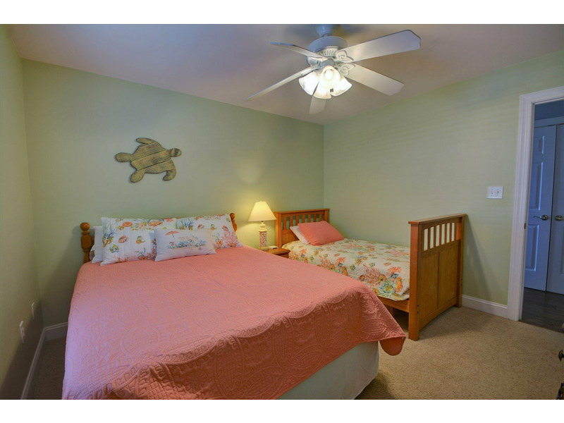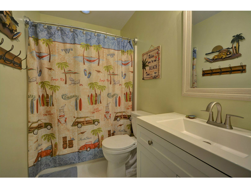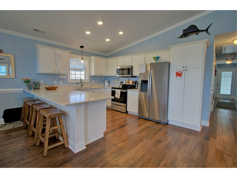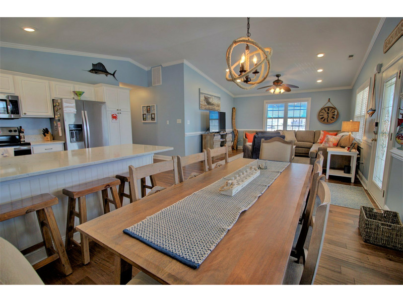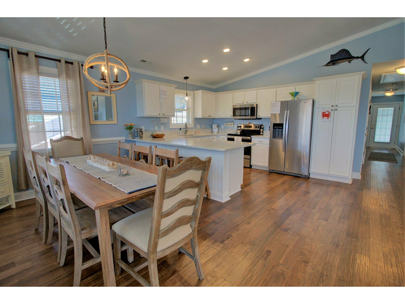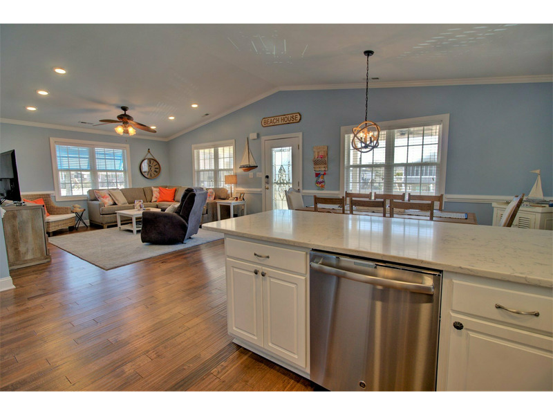 Once you enter the home into the main living area, you are greeted with island elegance. To the right, the living room provides comfortable furniture and a large flat screen TV for the days that you need to get out of the sun. To your left, the well appointed dining area flows into the kitchen. The kitchen boasts all the necessities of home, including spacious granite counter tops, stainless appliances, and extra bar style seating.