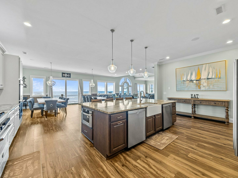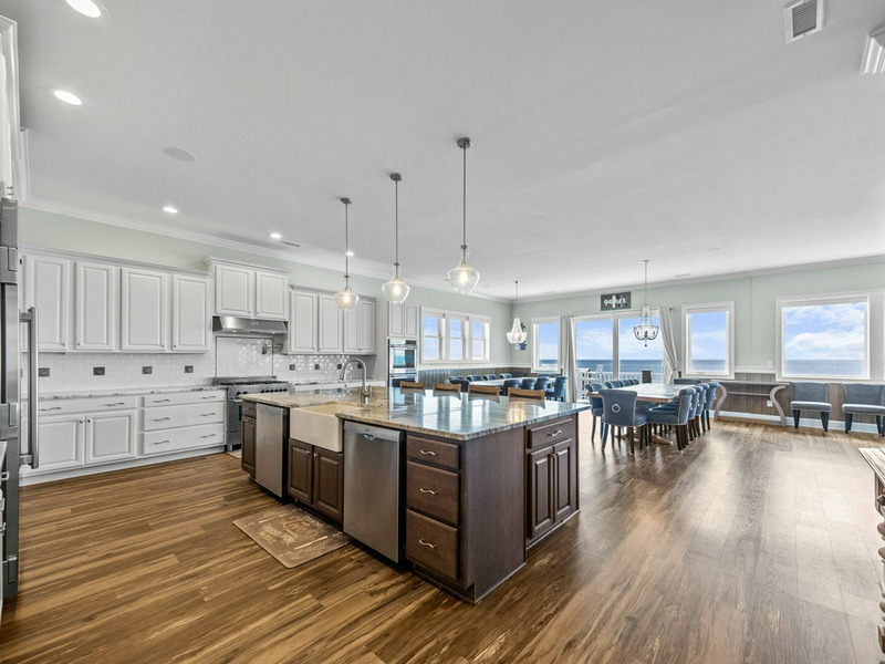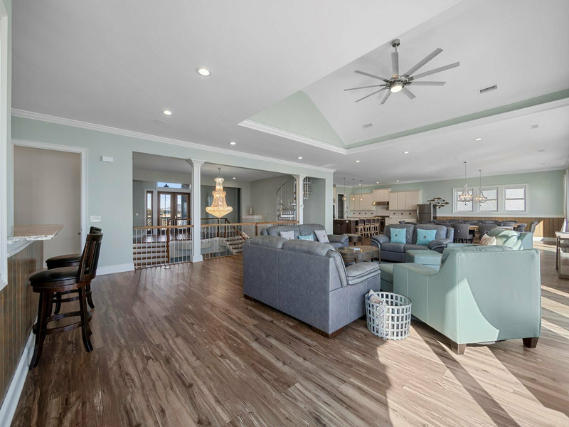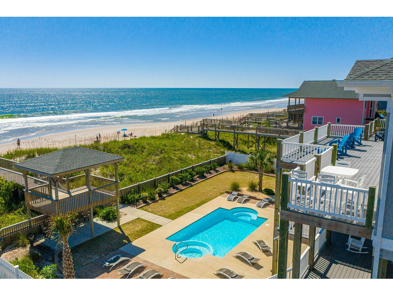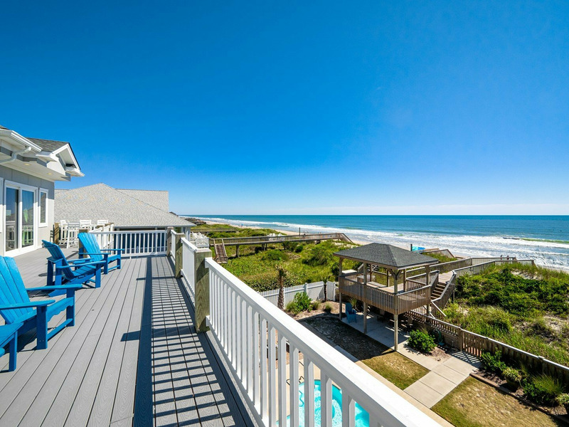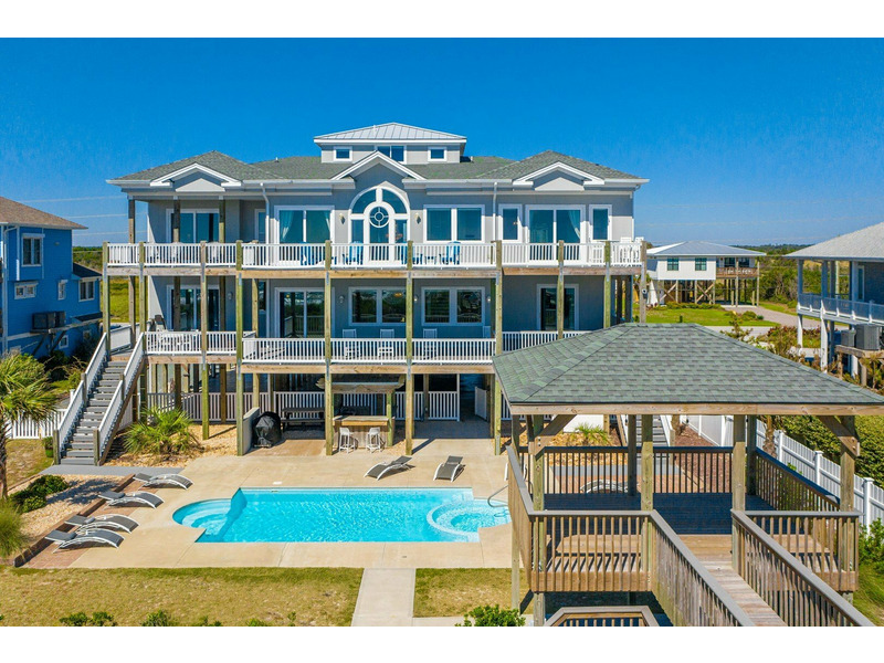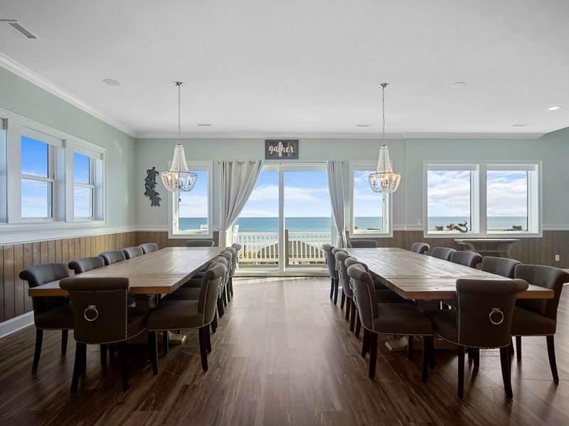 Welcome to Topsail Manor, a truly unique oceanfront jewel on Topsail Island. Topsail Manor is an 8,000 square foot, grandiose, eight bedroom oceanfront manor that boasts luxurious amenities, spacious accommodations, and elegant coastal décor. Designed to accommodate large groups, Topsail Manor’s approximately 8,000 square feet provides the perfect venue for weddings, reunions, multi-family vacations, and corporate events.