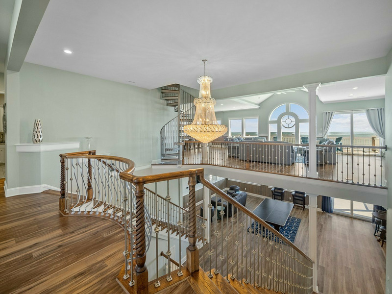 Upon arrival to the manor, you find a beautifully designed home with ample parking, manicured landscaping, and a “grand” entrance with beautiful wooden double doors. Once inside, you are greeted with a curved staircase and elegant crystal chandelier in the foyer. Use the beautiful staircase or the hydraulic elevator to access the main floors! Move along upstairs to the first floor where you will find hours of entertainment amenities! The first floor living area provides a regulation pool table, bar with a beverage cooler, separate ice machine, microwave and sink, whole house sound system for main living areas, flat screen TV and gorgeous ocean views.
