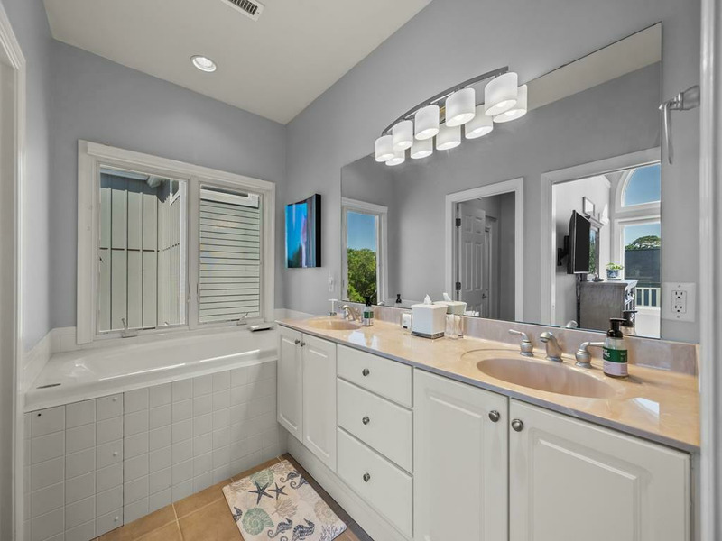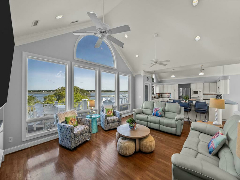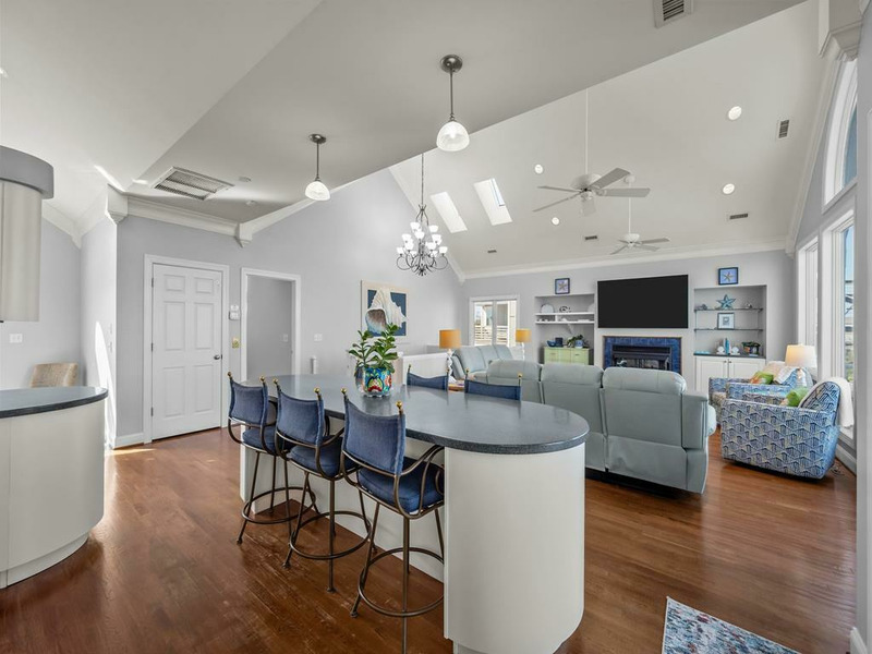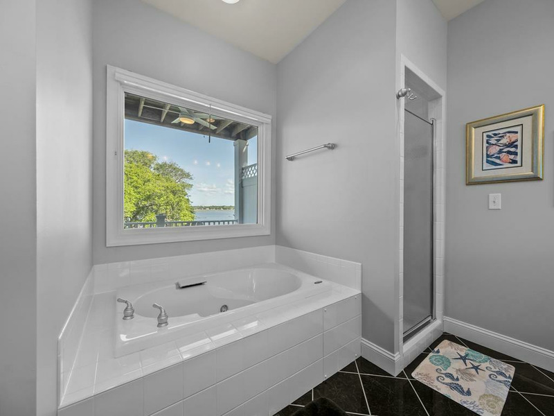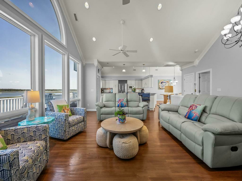 Enjoy the Joyful Sound in this luxurious waterfront retreat, ideal for creating lasting memories by the water with a private dock, community boat launch and easy beach access. Upon entering the property, you will be greeted by a beautifully designed interior boasting modern amenities and upscale furnishings throughout. The top floor living area offers sweeping views of the water from the open living, dining and kitchen areas. Also on this level, there is a water view king bedroom en-suite with a soaking tub and separate shower. On the middle level, one of the king bedrooms can be adjoined with the pyramid bunk bed (includes a double and two twin beds) and a tub/shower bathroom. Each of the other king bedrooms also have private baths, one with a shower bath and the other with a soaking tub and separate shower. On the ground level, there is a spacious family room with a large tv and even a game system for entertainment. This property offers a plethora of amenities to enhance your stay, including kayaks, paddleboards, bicycles, a beach wagon, and more. Additionally, an elevator provides easy access to each floor. Conveniently located near the beach, this home is a true coastal paradise. Whether you prefer lounging on the deck, exploring the water on a kayak, or simply taking in the sunset views, this island retreat has something for everyone. 5 BR, 4.5 Bath/Occupancy Limit 12: 4 K, 1PBwT (1 D, 2 T) *Beds made w/Linen Package purchase. No pets and no smoking allowed.