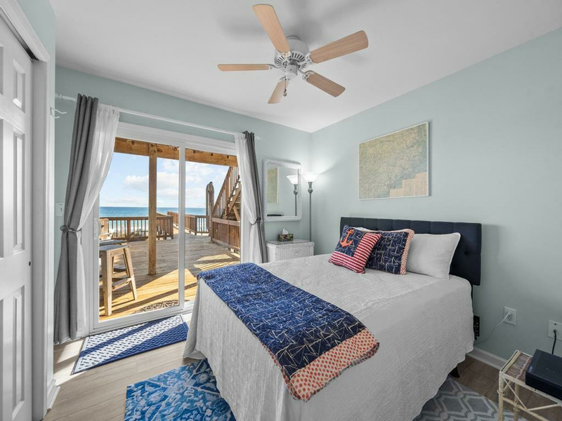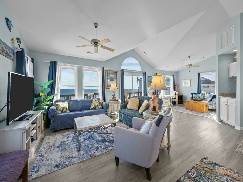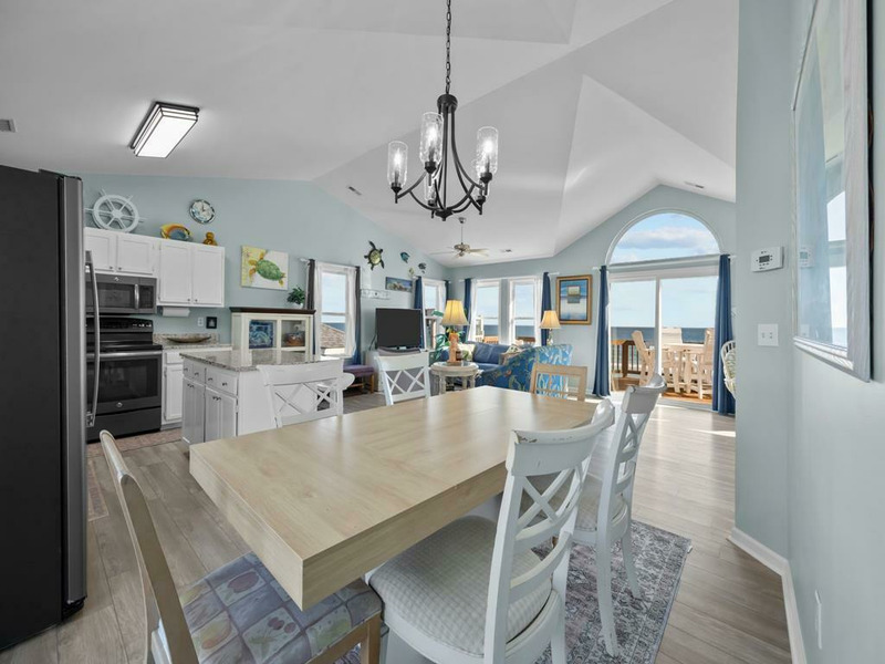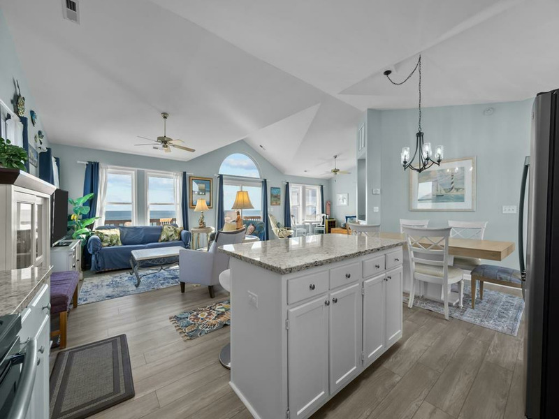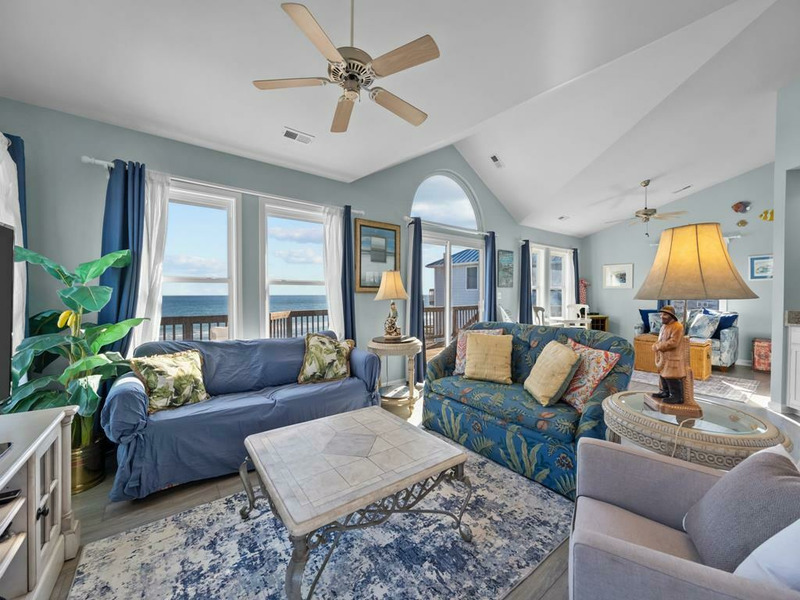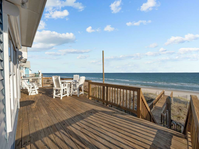 New renovations this winter will include an additional bedroom and will be ready for your âBeach Binge' vacation! The spacious top floor featuring panoramic views of the Atlantic Ocean and a door to the upper oceanfront deck is where you will find the living and dining area along with the fully equipped kitchen and a welcoming kitchen island. For added convenience, there is a wet bar, nearby. The new king bedroom is on this floor with a shower bath. The 4 bedrooms on the first floor include two oceanfront bedrooms with doors to the expansive partially covered oceanfront deck and doors to a shared shower bath. The laundry closet is located in the hall bath near the other two bedrooms. The first-floor oceanfront deck offers incredible ocean views with a large sundeck, lots of relaxing chairs, a partially covered area with a unique dining table, by the private walkway to the beach there is an outdoor shower. This location provides an exceptional blend of tranquility and yet only a short distance to dining, shopping and local attractions.5 BR, 3 Baths, Occupancy Limit: 10 - 1K, 4Q *Optional Linen Package available, PETS ALLOWED w/$215 fee for one dog. NO SMOKING ALLOWED *Cargo lift is unavailable for guest use *Keyless Entry