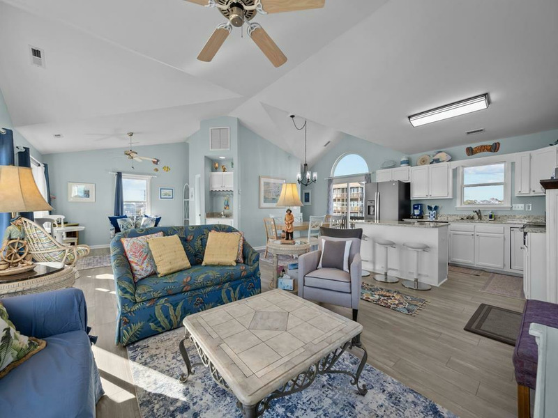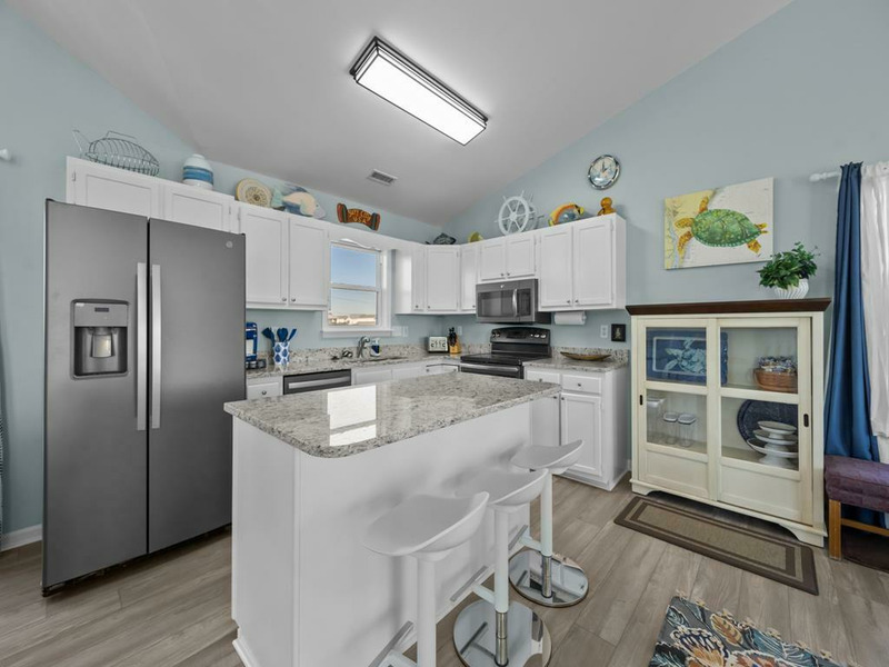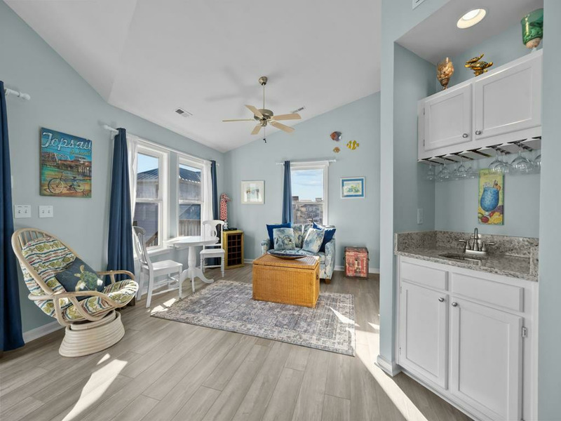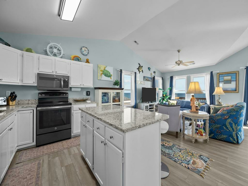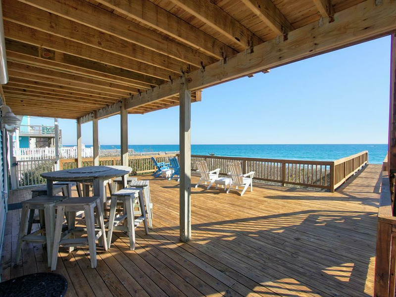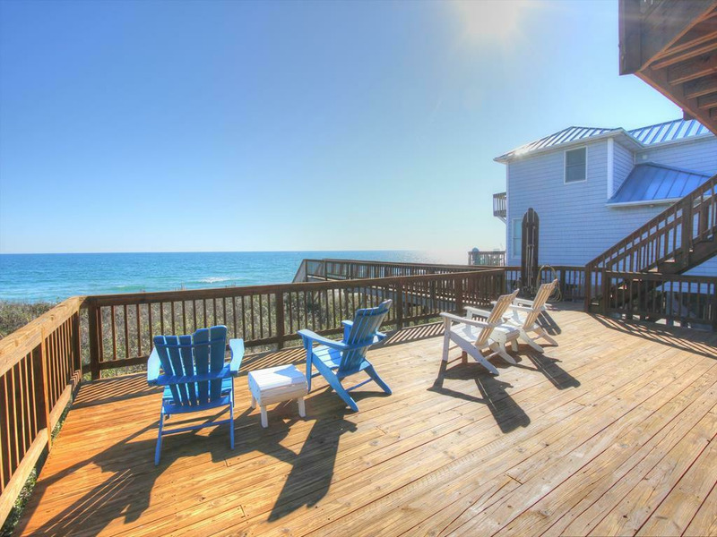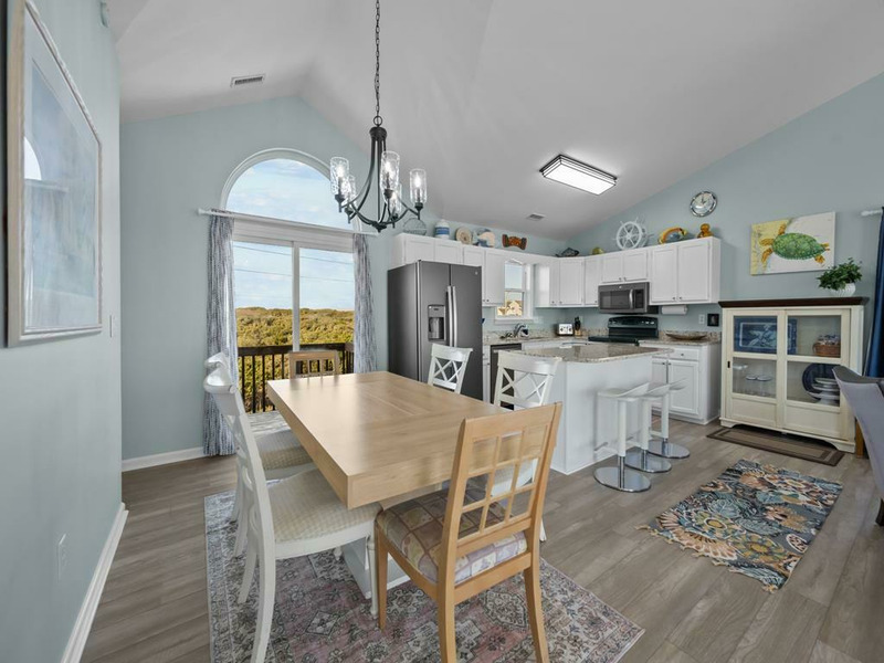New renovations this winter will include an additional bedroom and will be ready for your âBeach Binge' vacation! The spacious top floor featuring panoramic views of the Atlantic Ocean and a door to the upper oceanfront deck is where you will find the living and dining area along with the fully equipped kitchen and a welcoming kitchen island. For added convenience, there is a wet bar, nearby. The new king bedroom is on this floor with a shower bath. The 4 bedrooms on the first floor include two oceanfront bedrooms with doors to the expansive partially covered oceanfront deck and doors to a shared shower bath. The laundry closet is located in the hall bath near the other two bedrooms. The first-floor oceanfront deck offers incredible ocean views with a large sundeck, lots of relaxing chairs, a partially covered area with a unique dining table, by the private walkway to the beach there is an outdoor shower. This location provides an exceptional blend of tranquility and yet only a short distance to dining, shopping and local attractions.5 BR, 3 Baths, Occupancy Limit: 10 - 1K, 4Q *Optional Linen Package available, PETS ALLOWED w/$215 fee for one dog. NO SMOKING ALLOWED *Cargo lift is unavailable for guest use *Keyless Entry