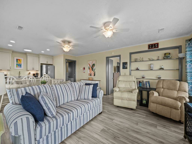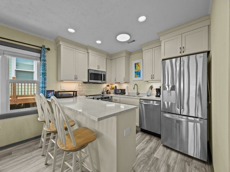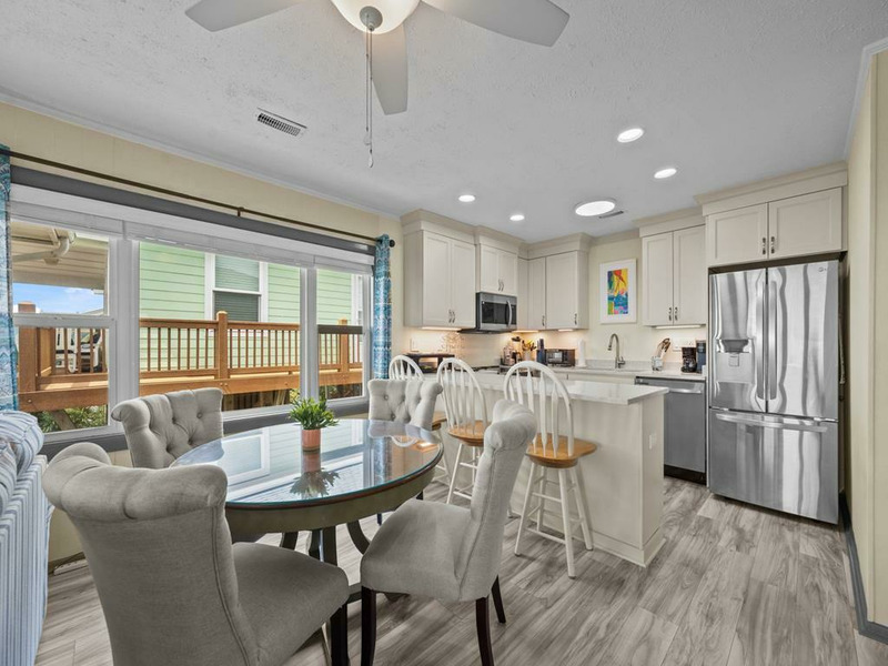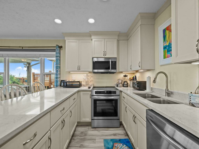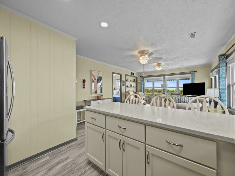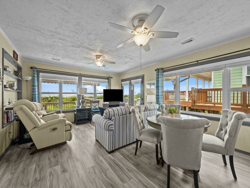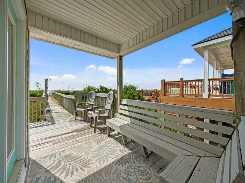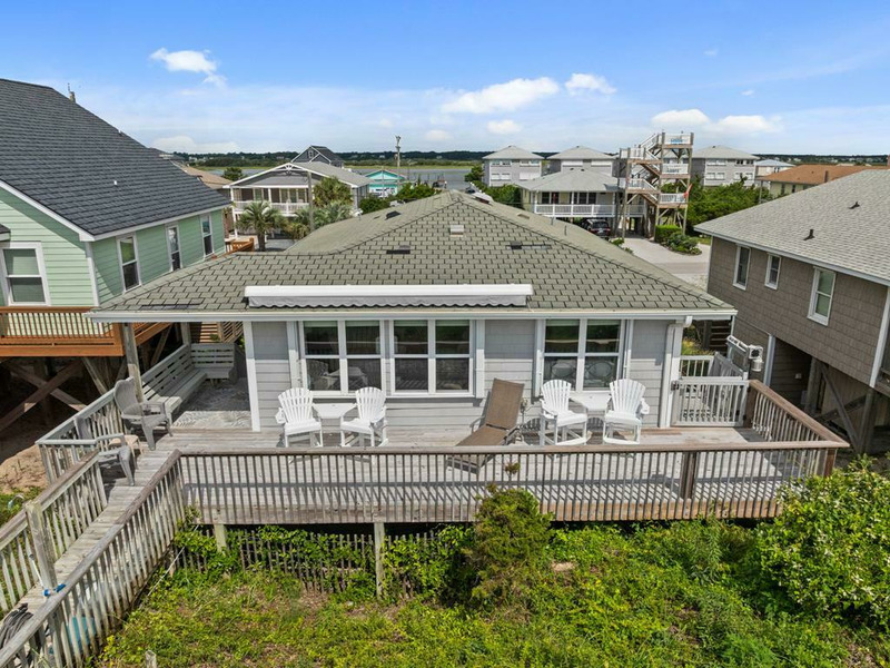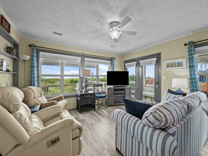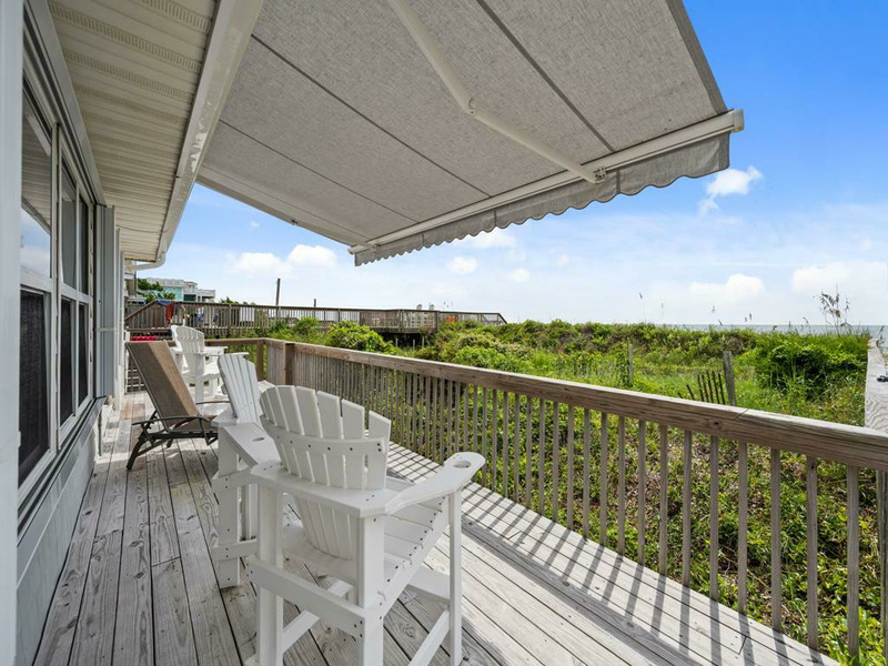New to renting and new renovations! This oceanfront property provides panoramic views and direct access to the beach, complemented by numerous recent upgrades. Notable outdoor features include a covered side entrance, an open sun deck equipped with a retractable awning, an enclosed hot and cold outdoor shower, and cold water shower on the private beach access. Upon entering, guests are greeted by ocean views from the living, dining and kitchen area, accompanied by updated flooring, new appliances and comfortable furnishings, all designed for a seamless vacation experience. The residence offers a tranquil setting for morning coffee on the deck or relaxation to the sound of waves, making it ideal for rest and rejuvenation. The home is thoughtfully laid out on a single level, featuring an open living area, three bedrooms, and two bathrooms. The oceanfront king bedroom includes a private shower bath, while both queen bedrooms have convenient access to a nearby hall bathroom with a shower. The property is situated within close proximity to the charming downtown area of Topsail Beach for shopping, dining, fishing pier, etc. Pets considered w/$165 fee (25 lbs or less) 3 BR, 2 Bath, Occupancy 6: 1 King, 2 Queen LINENS NOT PROVIDED UNLESS PURCHASED. NO SMOKING ALLOWED. *Garage and Lift are unavailable to guests *Sunday to Sunday Rental *Keyless Entry