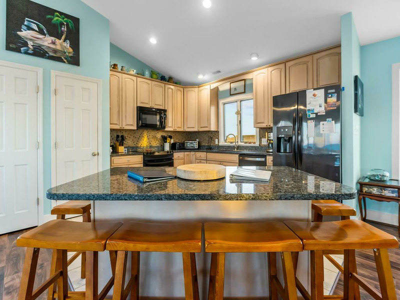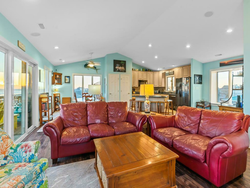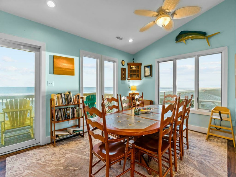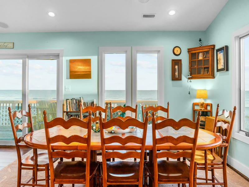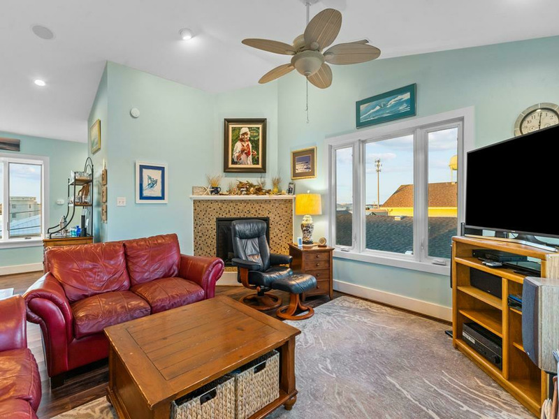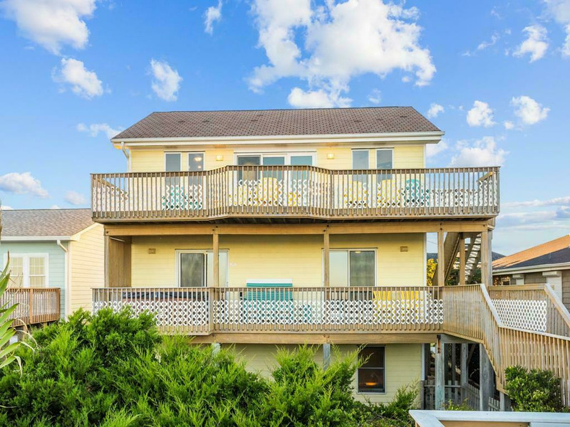 Beautiful beach house - the perfect place to relax and enjoy a calm vacation! The top floor is an open living, dining and kitchen area surrounded by windows with views of the ocean and a fireplace! On the 1st floor you will find a King Bed bedroom with ceiling fan, and tv. Along with two other queen bedrooms equipped with ceilings fans and TVs. The fourth bedroom on this first floor has a pyramid bunkbed (double & twin bed). The fifth bedroom is located on the ground floor with two twin beds, a TV and ceiling fan. This bedroom has a private full bath and separate entrance on the ground level. Relax in the hot tub on the covered deck and watch the moon shine on the water! There is a fenced-in yard, two car garage, plenty of deck furniture, a porch swing on the covered deck, a large dune deck, and only minutes away from the Topsail Beach downtown area.5 BR, 3.5 Baths / Occupancy Limit: 10 - 1K, 2Q, 1PB(D&T), 2T. LINENS NOT FURNISHED UNLESS PURCHASED. NO SMOKING ALLOWED. PETS ALLOWED w/$115 Fee for first pet, $202 for 2, max weight 50 lbs. Hot Tub Rules & Waiver is required. * Keyless Entry / Sunday to Sunday Rental