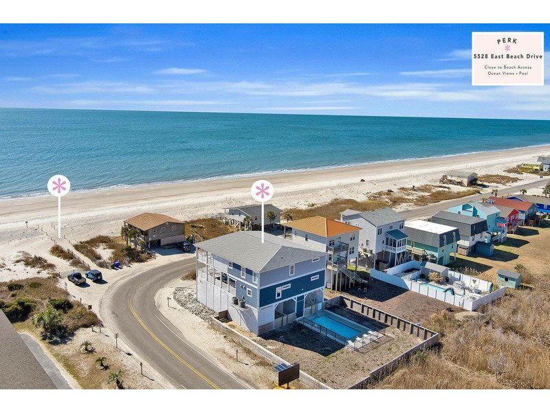 Notable & Unique Features:- Beach Access: Across the street- Approx. 4,291 sq. feet.- Public beach access just steps away across the street- Within walking distance to local park with basketball hoops, splash pad water park, community tennis court and more park fun!- Within walking distance to lots of great shopping and dining- Convenient to many more great shops, restaurants, grocery stores, Ocean Crest Pier, Oak Island Pier, Oak Island Golf Course, putt-putt and arcade, sky diving, helicopter rides, Oak Island Lighthouse, and other fun activities- Short drive to historic Southport and ferry rides to NC Aquarium and Civil War Museum in Kure Beach and to Bald Head Island- Beds: 2K, 5Q, 2D, 2T with T Trundles, 1BB T/D with T Trundle- Entertainment: Flat screen TVs. Cable. TVs in all bedrooms. Board Games.- Open floor plan- Carpet, tile and wood flooring- Ceiling fans- Spacious carpeted bedrooms- Private master suite- Elevator to all floors- Elderly friendly- 2 Wrap-around covered porches with rocking chairs and ocean views- Plenty of outdoor seating- Keyless entry- Hot tub on top level covered porch- Charcoal grill- Outdoor shower- Private swimming pool- Paddleboards- Privacy fenced backyard- Private/enclosed parking- No pets allowed