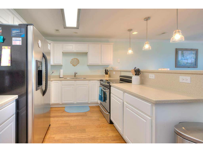 This gorgeous condo is not only beautiful, with hardwood flooring throughout and spacious kitchen and bedrooms, but is also ideally located in the heart of Oak Island. Perfect for everyone from the elderly to the kiddos and everyone in between. Custom tile walk-in showers, a bunk room for the kids, a nice covered balcony to sit, relax and enjoy the warm ocean breezes. The community pool (seasonal) is just next to this unit, and the beach is only a short walk down the street. The location of this condo cannot be beat! It is a top-floor end unit, so you will love the quieter atmosphere of not having anyone above you or to one side of you. If you feel like shopping or dining out, you are within walking distance to many great mom-and-pop restaurants and unique shops. So, come and see and make this the sweet spot you journey to year after year. Make your reservation today before this island treasure gets taken!