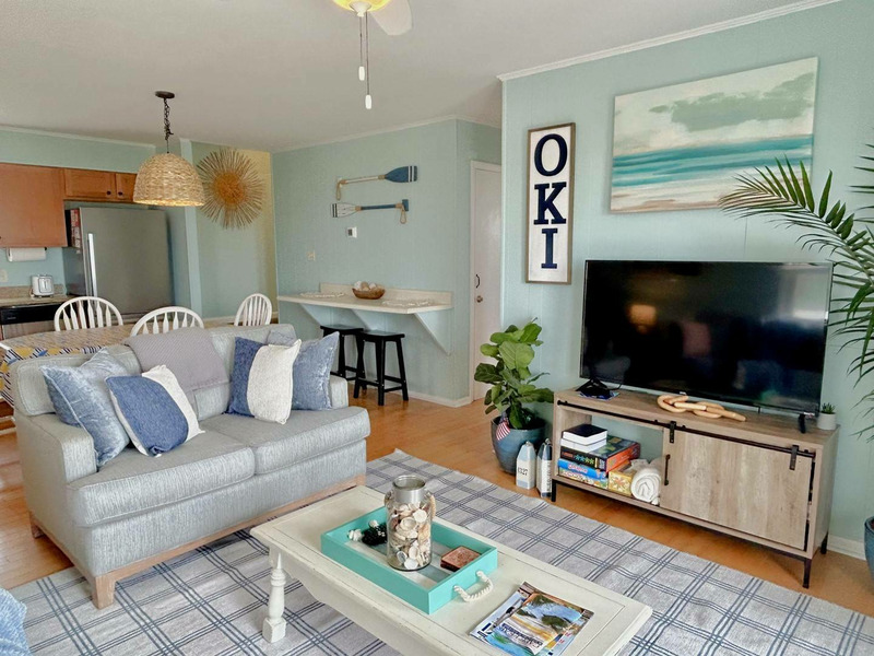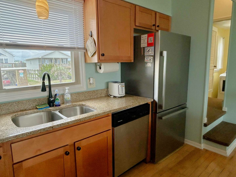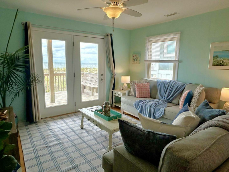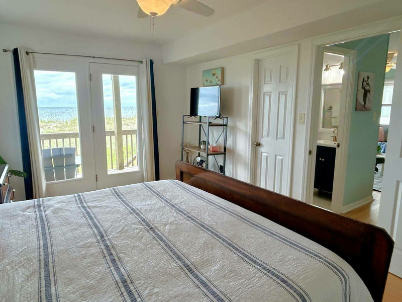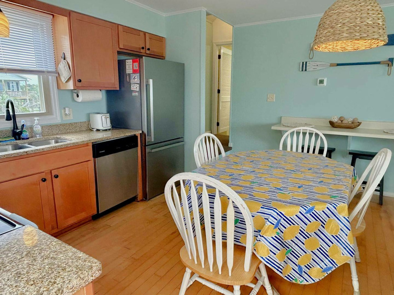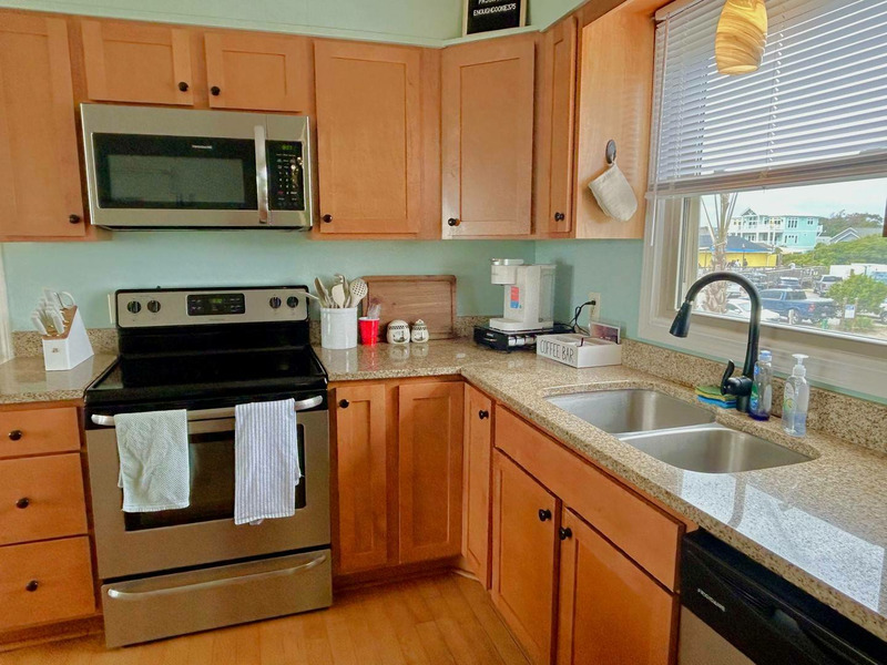 Just inside, you are sure to love the open concept living, dining and kitchen area that features a breakfast bar off to the side of the dining and kitchen. Everyone can be together making cherished memories. Modern stainless-steel appliances make whipping up that delicious meal a breeze. Three cozy and spacious bedrooms offer sweet retreats for a most restful night's sleep or a great space to slip away during the day for some private time if so desired. The king master bedroom on the first floor features a private bath and amazing views, allowing you to wake up to a gorgeous sunrise painted sky glimmering off the ocean. The second floor offers a queen bedroom also with ocean views. One more second floor bedroom offers a queen bed and a twin over twin bunk bed, perfect for a small family, teens or a groups of friends to enjoy as their own private space.