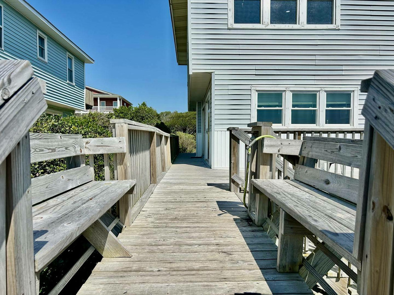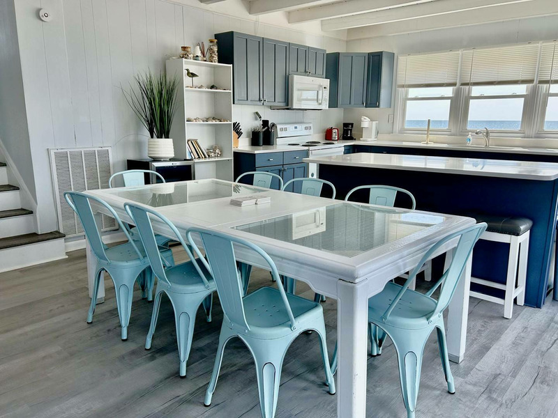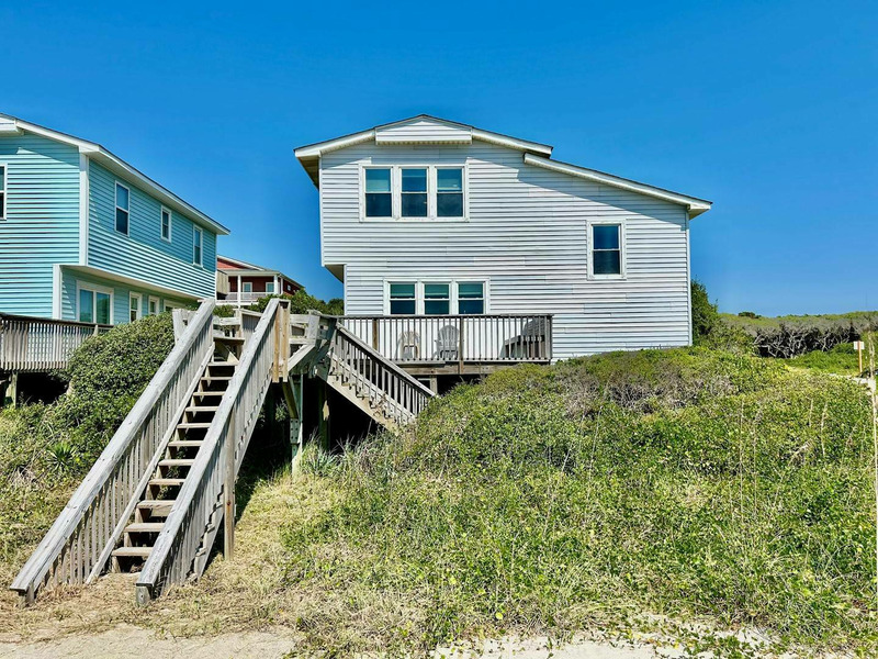 This charming, uniquely designed home offers you and your loved ones the perfect beach oasis. Enjoy a lovey, updated oceanfront home with the modern amenities and touches you desire, but still keeping the feel of classic beach cottage character with an angled beam ceiling on the lower level. Luxury plank flooring throughout, plus a beautiful open-concept living, dining and kitchen on the lower level, makes for comfort and ease on your beach retreat as you enjoy gorgeous ocean views. The kitchen is thoughtfully designed for making culinary creations a breeze, with a large island for extra cooking prep space, as well as breakfast bar seating. Everyone can be in on the fun! Travel up to the middle level where 2 bedrooms share a full guest bath in the hallway. Then, up on the top level the remaining 2 bedrooms share a Jack-n-Jill bath. This home is ideal for families, couples or a group of friends! Just outside, you can lounge on the oceanfront sun deck soaking in warm, salty ocean breezes and listen to the lullaby if the waves roll onto shore. Just steps away from the deck, spend the day on the shore building sandcastles and enjoying long walks on the beach at sunrise and sunset. Nearby, experience the sights and sounds of the Intracoastal Waterway, as well as Blue Water Point Marina, and enjoy casual seafood dining on the water at Lonerider Restaurant. Travel down to The Point for spectacular sunset views over the inlet. You might even catch a glimpse of a pod of dolphins as they swim by or pelicans flying in formation overhead.
