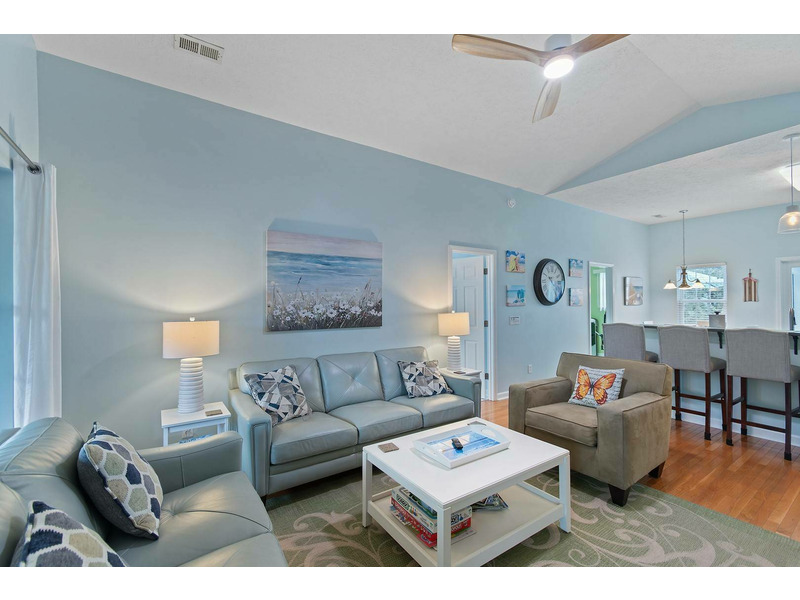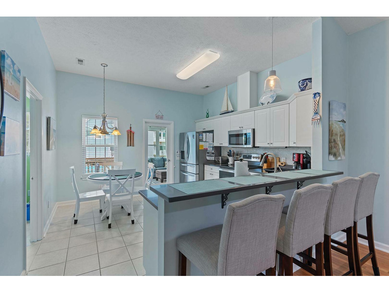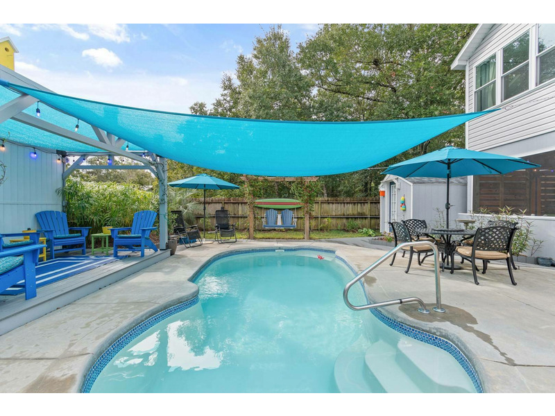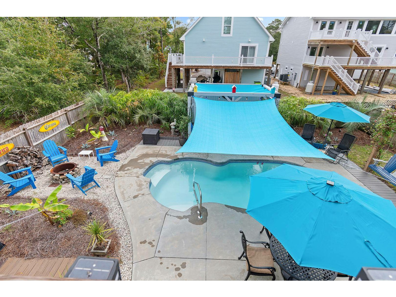 This beautifully designed home will have you taking it easy in no time! Get ready to bask in warm, salty ocean breezes in gorgeous surroundings at this lovely home, where long afternoon naps are welcome. You and your loved ones are sure to love the private swimming pool (with pool heating and cooling available for an additional fee) and lounging by the fire pit and grill area as the chef in the family grills out the best hamburgers and hotdogs you've ever tasted. Enjoy the shade of the gazebo sitting area or step inside the screened patio just off the pool area with TV, bar and chairs to socialize and enjoy your favorite game or show. For your convenience, a half bath is just next to the pool area. Travel upstairs to the main house and you are greeted by an expansive 2nd screened porch where you can relax with your favorite cup of coffee and listen to the sounds of nature as you reminisce with family and friends about days gone by. Step inside and the open-concept living, dining and kitchen offer the perfect place for getting together for game and movie nights and delicious meals. The spacious kitchen offers modern and convenient stainless-steel appliances, plus lots of cabinet and counter space, so making those culinary creations will be a breeze. A sunroom offers not only another great space for the kids to separate from the adults and enjoy their own space, but also offers an extra sleeping option with a sleeper sofa. Three cozy bedrooms beckon you to the most restful night's sleep you've had in a while. The beach and even more fun to be had is only a short few minutes away! Make your reservation today before this island treasure gets taken!